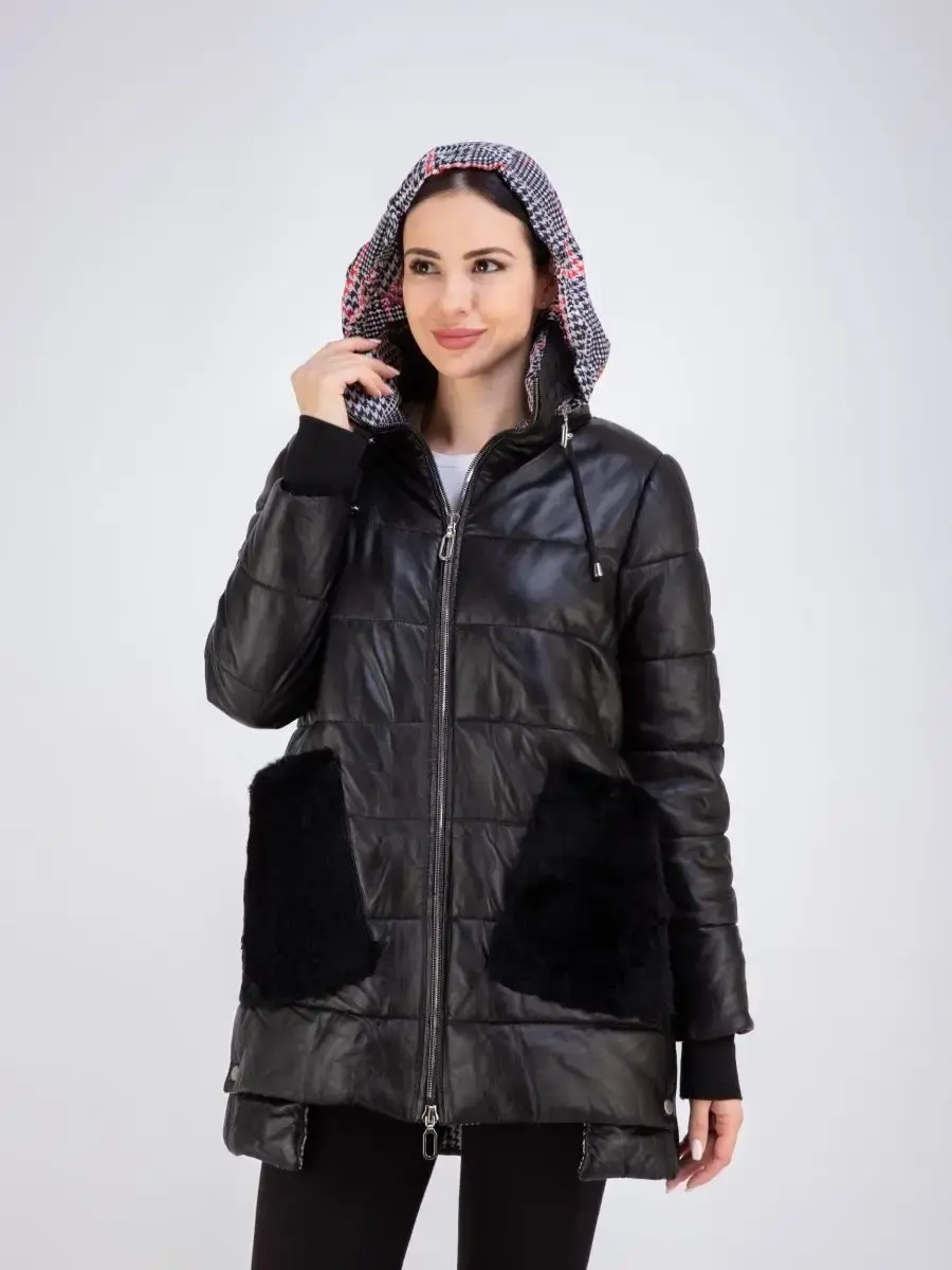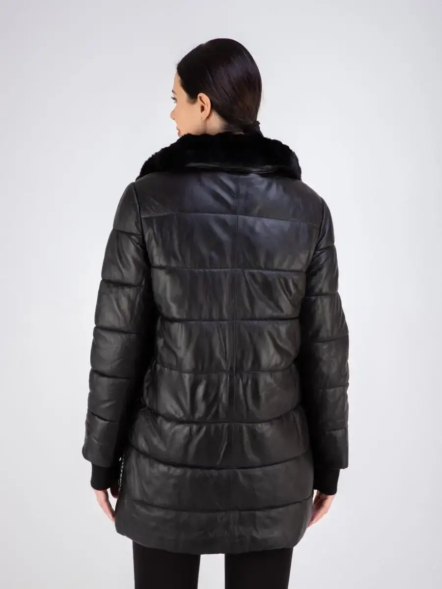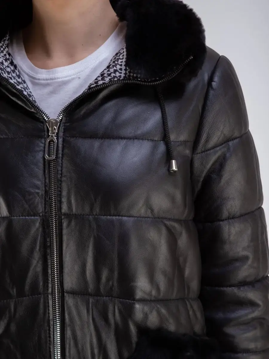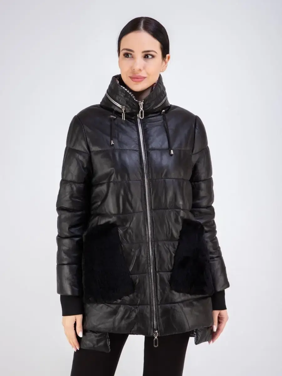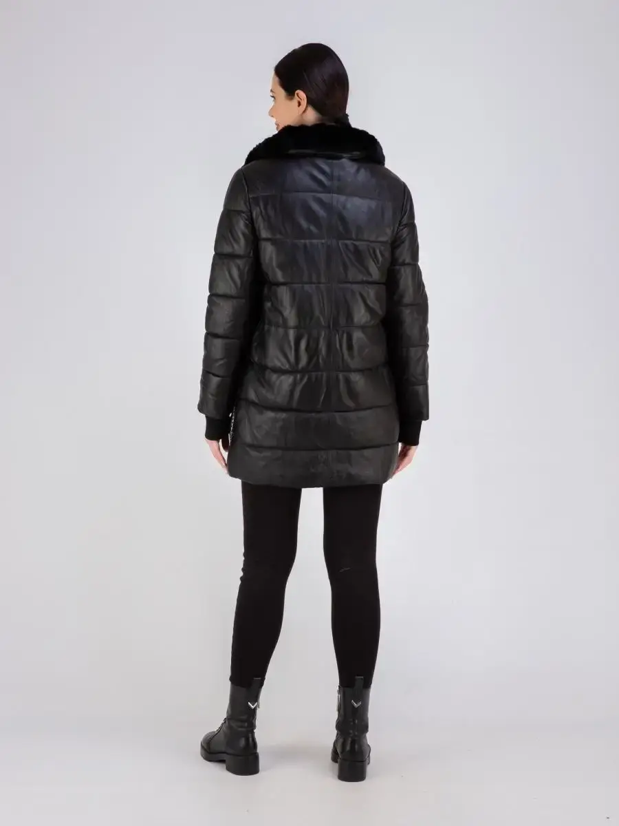 Женское пальто из гладкой натуральной кожи, куртка женская стеганая удлиненная. Кожаная куртка длинная с застежкой на молнии, с накладными карманами и с разрезом по бокам на кнопках. Пальто утепленное на синтепоне. Утепленная куртка женская, пальто стеганое отлично защитит от ветра и дождя, хороший вариант на каждый день и сезон, сочетается с различными вещами, прекрасно впишется практически в любой стиль - повседневный, городской, офисный и вечерний. Мех кролика на воротнике и на карманах, меховой воротник съемный, капюшон скрытый. Длина по спинке 80 см. Производства Турция.