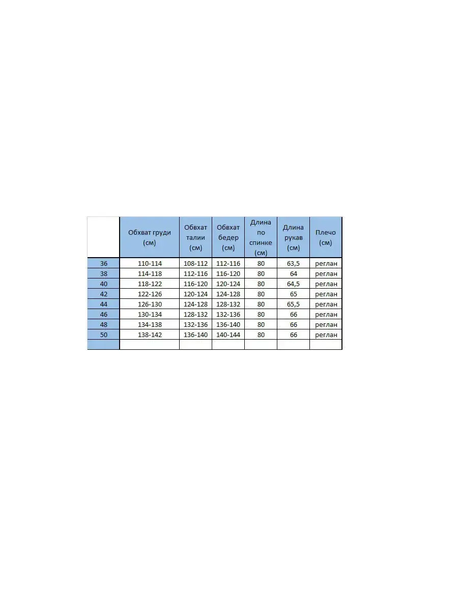 Длина изделия по спинке