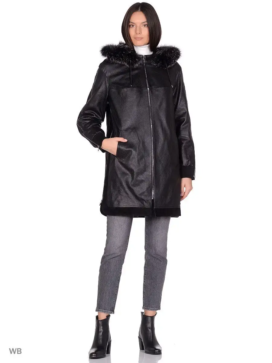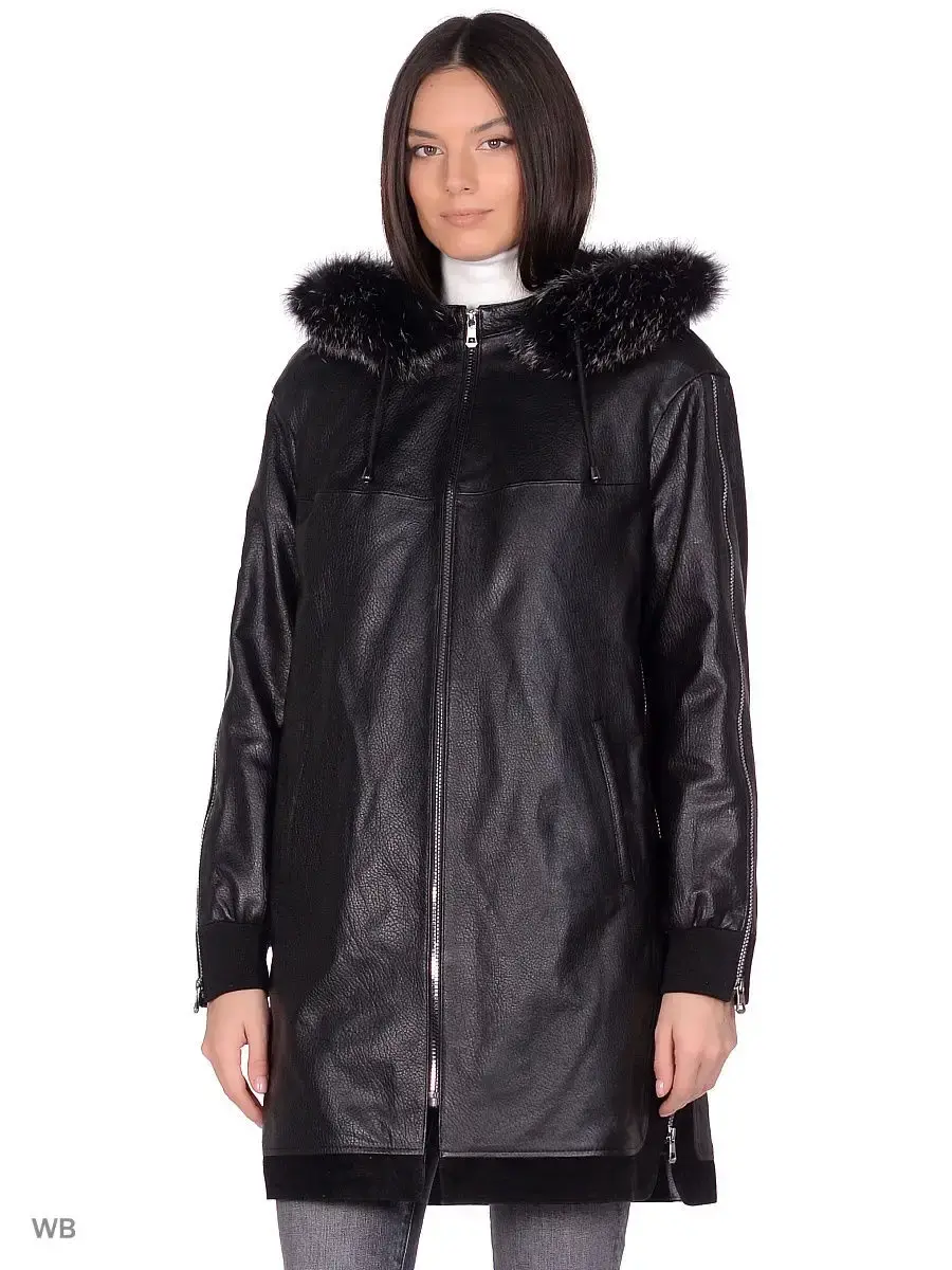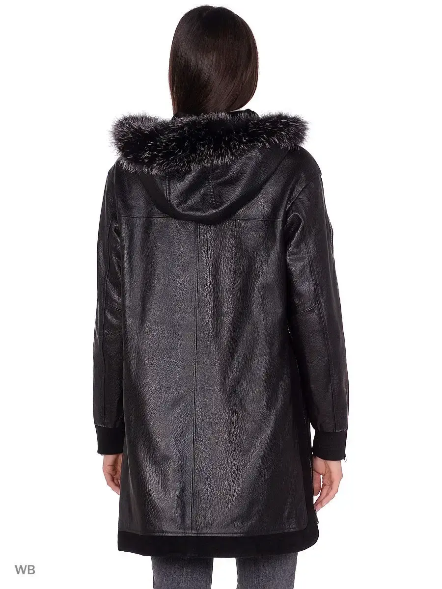 Плащ из натуральной кожи ягненка, с вставками на капюшоне из меха лисы. MONDIAL Производство Турция.
