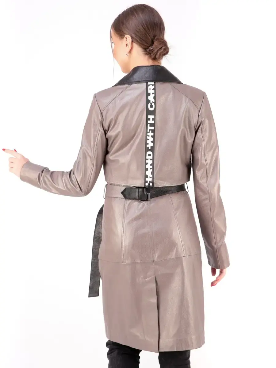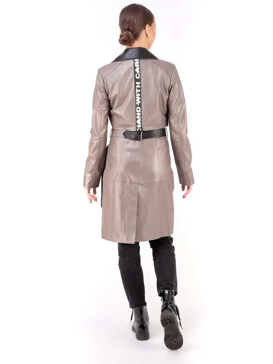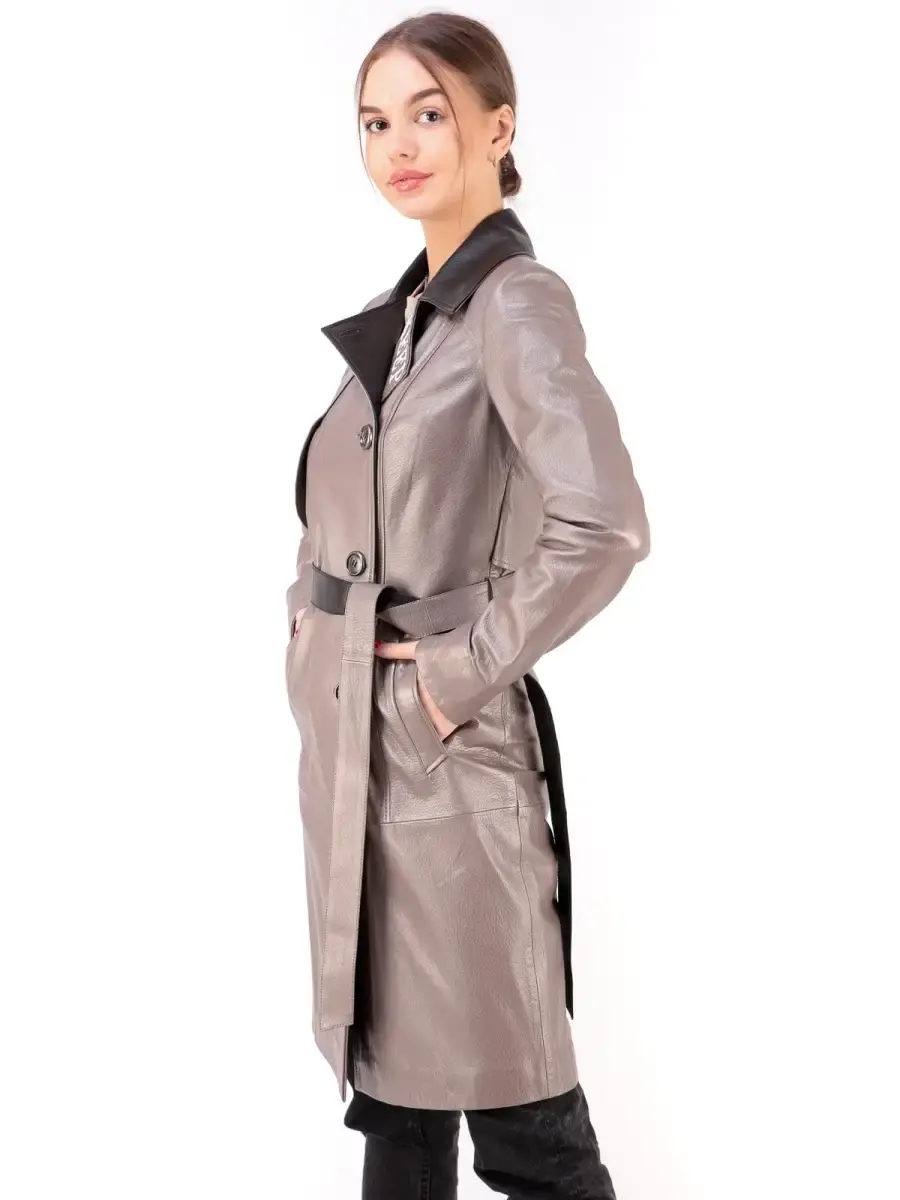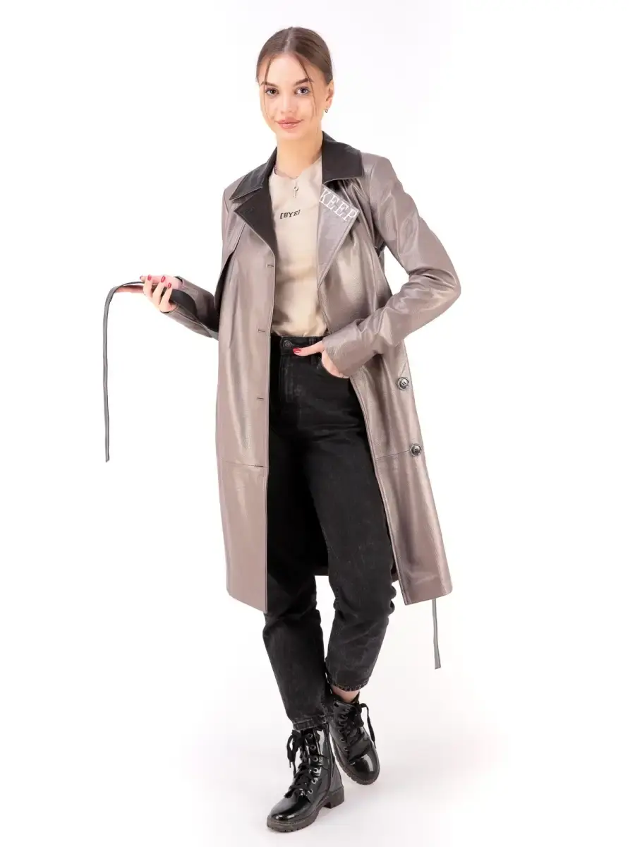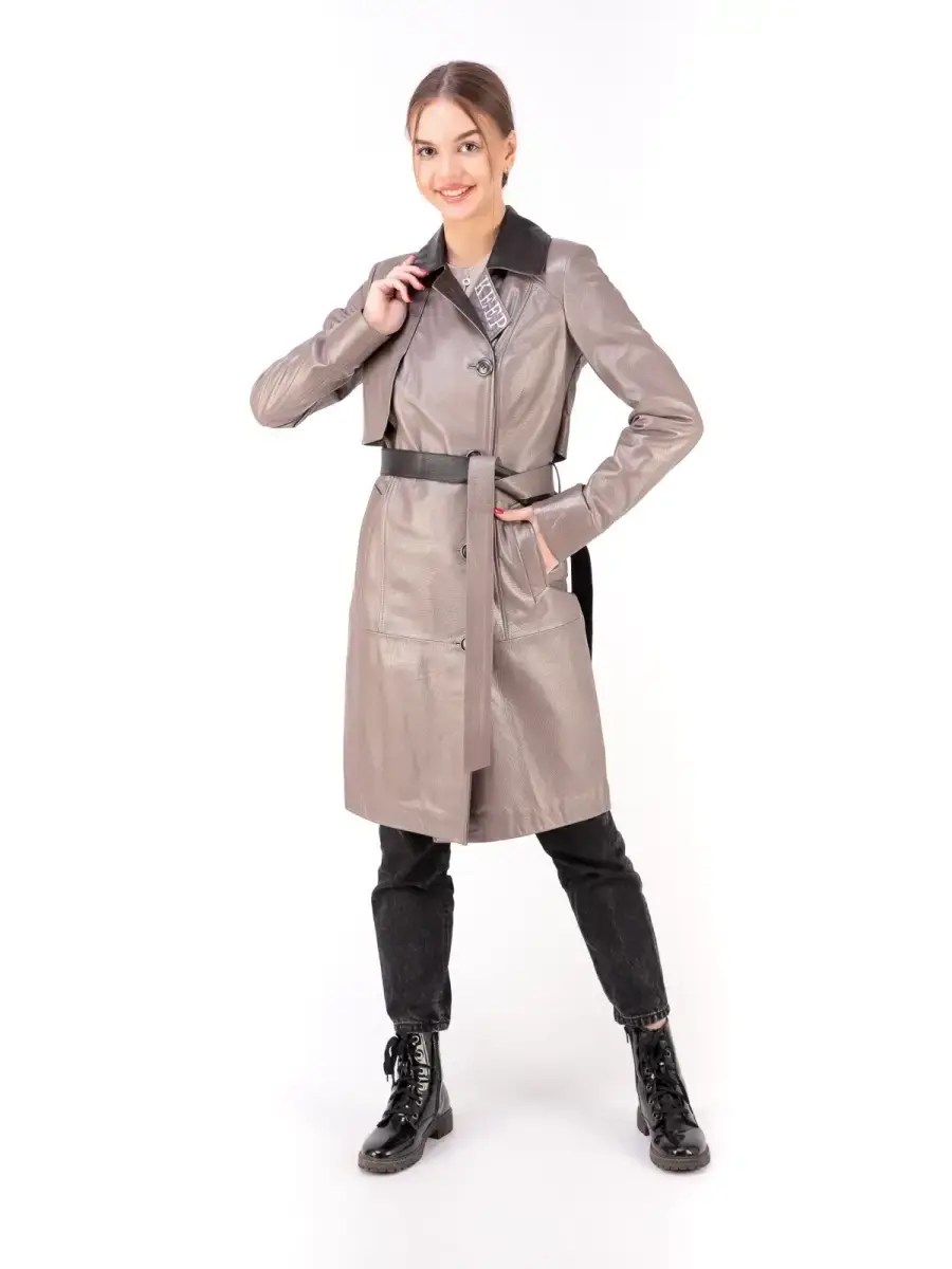 Стильный женский плащ из 100% высококачественной натуральной кожи. Кожа прочная и в тоже время мягкая. Выделка кожи текстурная, смотрится роскошно и богато. MONDIAL Производство Турция.