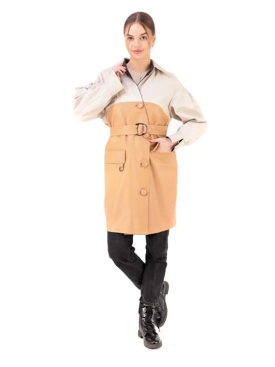 Стильный женский плащ из 100% высококачественной натуральной кожи. Кожа прочная и в тоже время мягкая. Выделка кожи текстурная, смотрится роскошно и богато. MONDIAL Производство Турция.