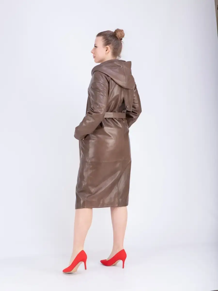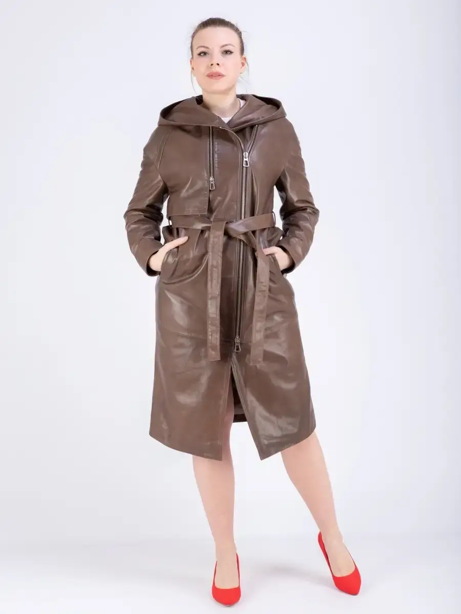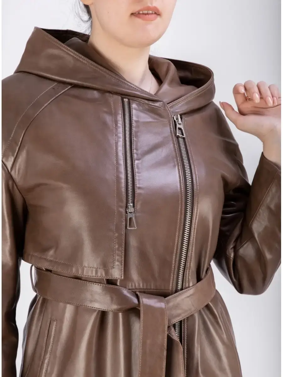 Элегантный кожаный плащ женский длинный с капюшоном из коллекции MONDIAL - стильная и качественная верхняя одежда, которая станет украшением ваших образов осенью и летом! Кожаный женский плащ сшит из непромокаемой и непродуваемой натуральной кожи ягненка. Ветрозащитный, водоотталкивающий материал премиум - качества не даст замерзнуть или промокнуть в прохладные весенние и осенние месяцы.