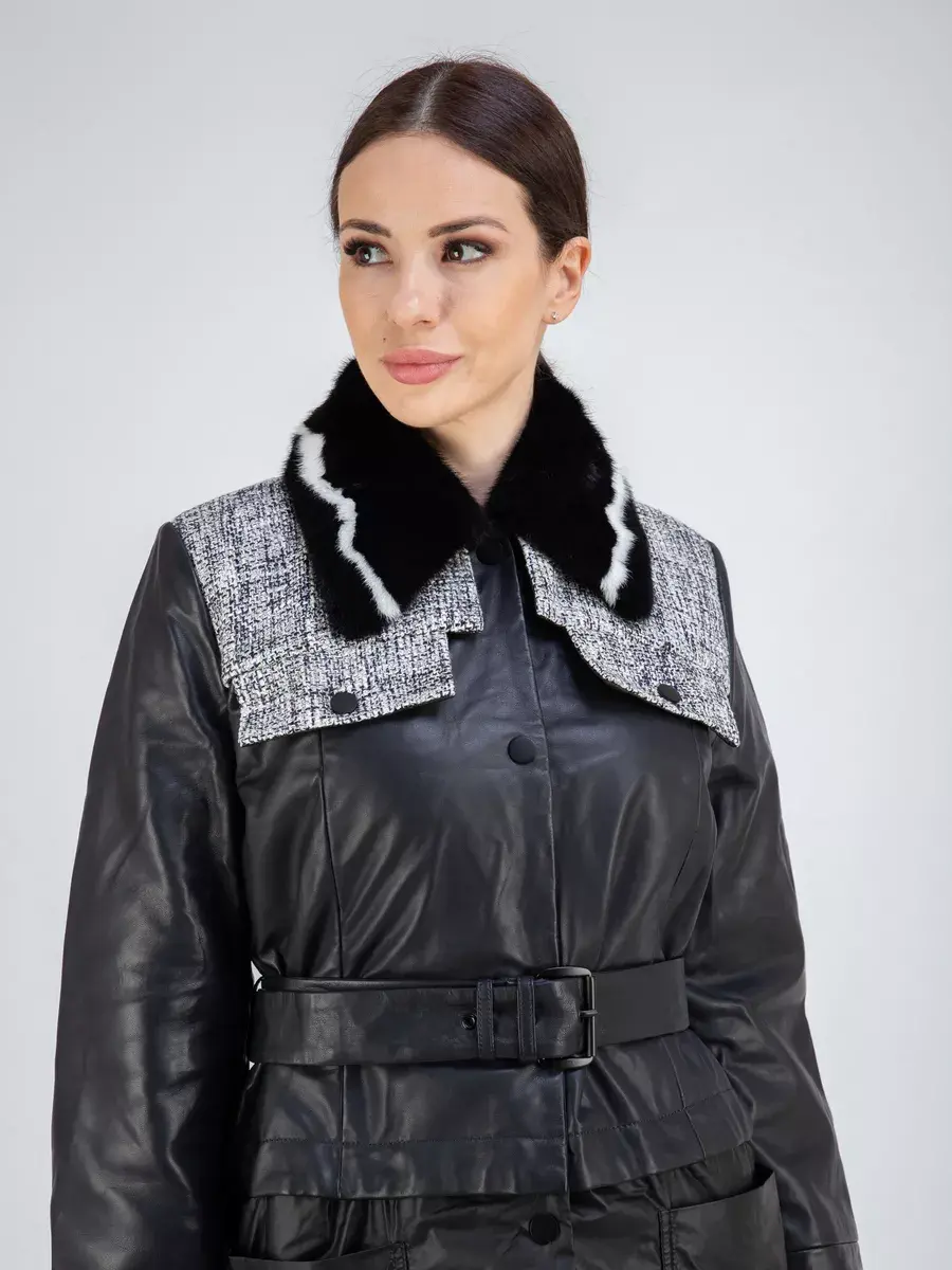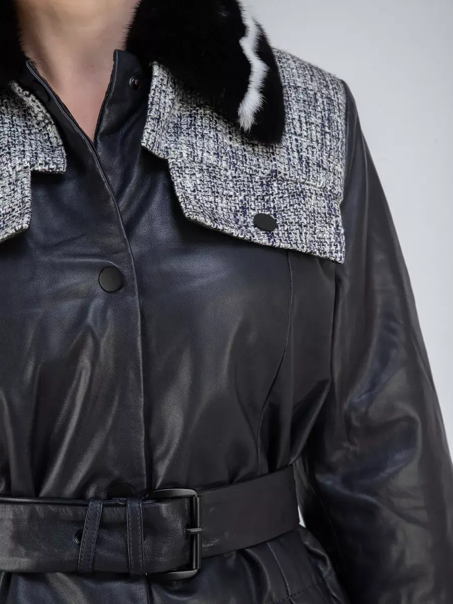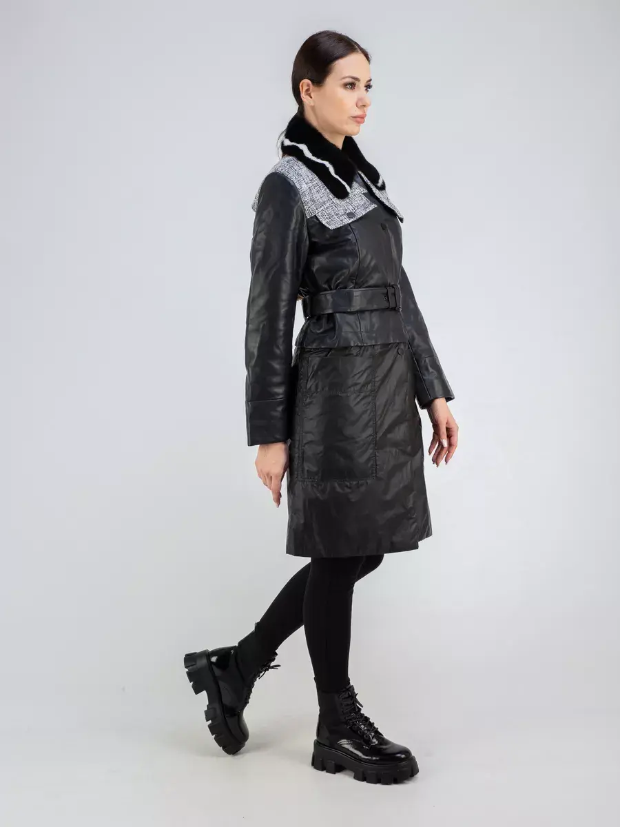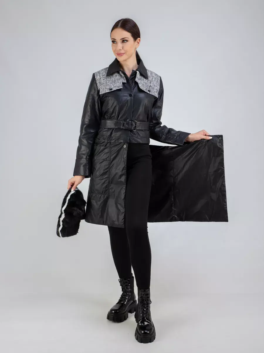 Каждая деталь плаща выполнена с особым вниманием к качеству материалов. Изысканный материал, вставки из ткани, мех норки, стильные накладные карманы добавляют акценты стиля и функциональности, делают этот плащ кожаный женский 2 в 1 неповторимым и эксклюзивным. Отложной воротник, застежка на кнопках добавляет изюминку образу. Женский кожаный плащ подходит практически под любой стиль, деловой или повседневный, вечерний.