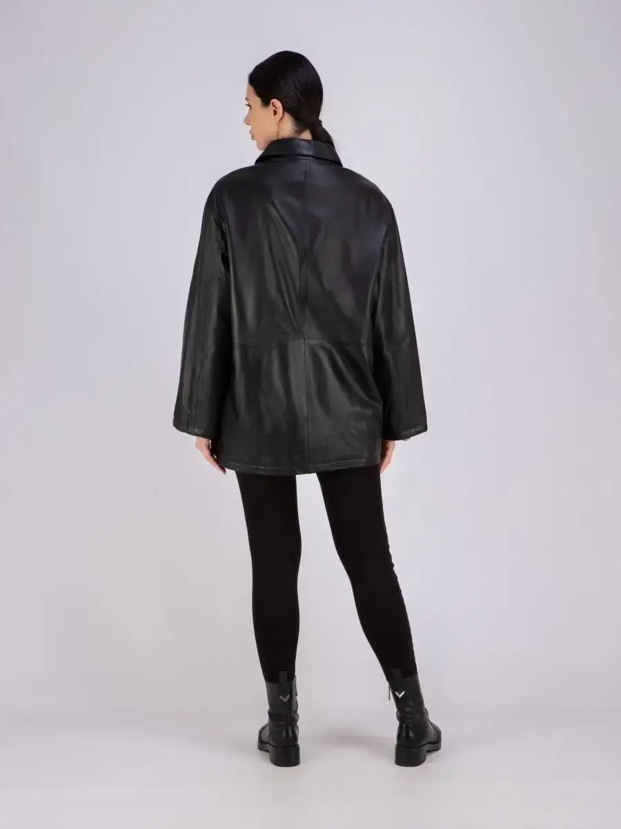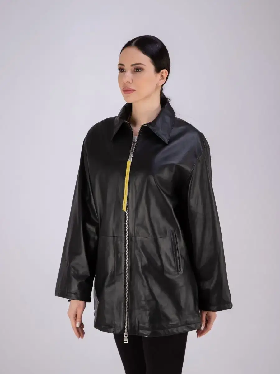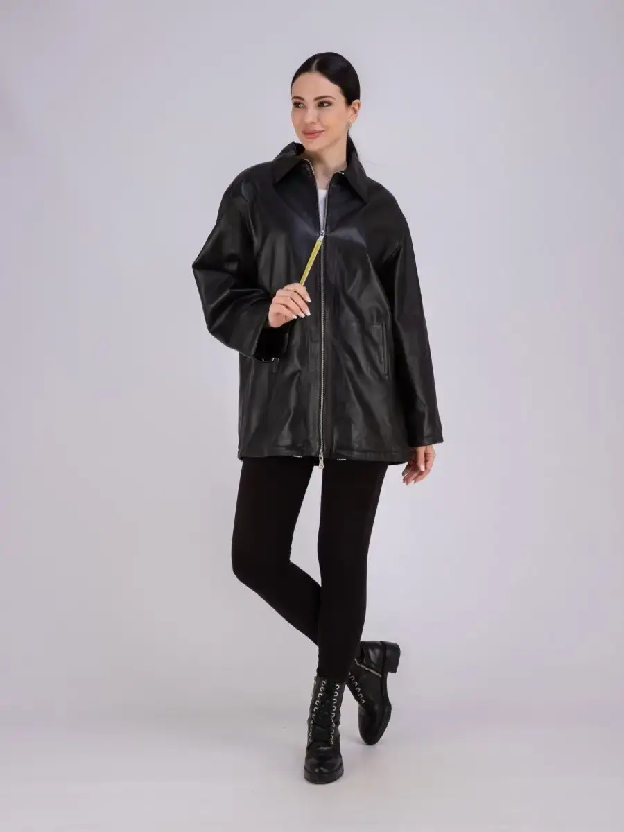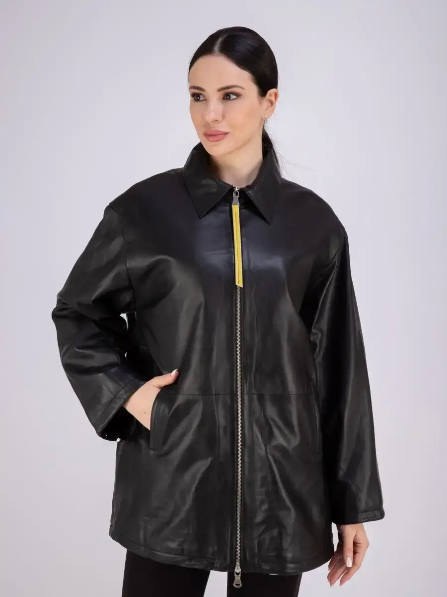 Плащ женский кожаный из 100% высококачественной натуральной кожи. Элегантный плащ кожаный женский с застежкой на молнии принесет Вам тепло и комфорт в любое время года. Стильный лаконичный кожаный плащ свободного кроя с кулисками станет альтернативой тканевому. Демисезонный плащ выполнен из нежной однотонной черной кожи ягненка, которая защитит вас в любую непогоду. Прорезные карманы, свободный рукав, воротник стойка - отложной делает этот плащ идеальной верхней одеждой на весну, осень и прохладное лето. Кожаный плащ прекрасно впишется практически в любой стиль — повседневный, городской, офисный и вечерний. Вы можете купить плащи женские, тренчкот, куртки женские, косухи, куртка женская, кожаная куртка, куртка демисезонная женская, куртка женская весна, куртка женская демисезонная, кожаная куртка женская, куртка кожаная женская, кожаный плащ женский в подарок со скидкой на странице бренда MONDIAL! Коллекция обновляется каждый сезон. Длина по спинке 80см. Производство Турция