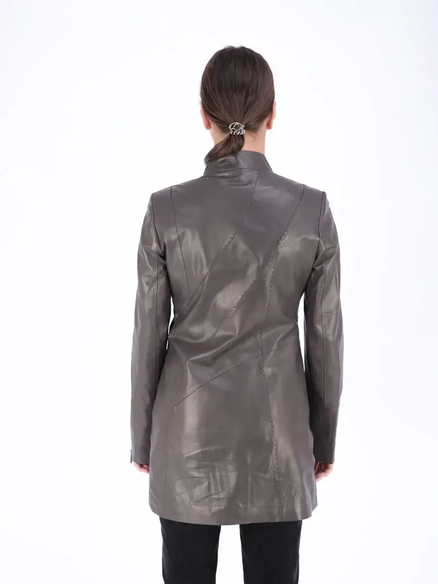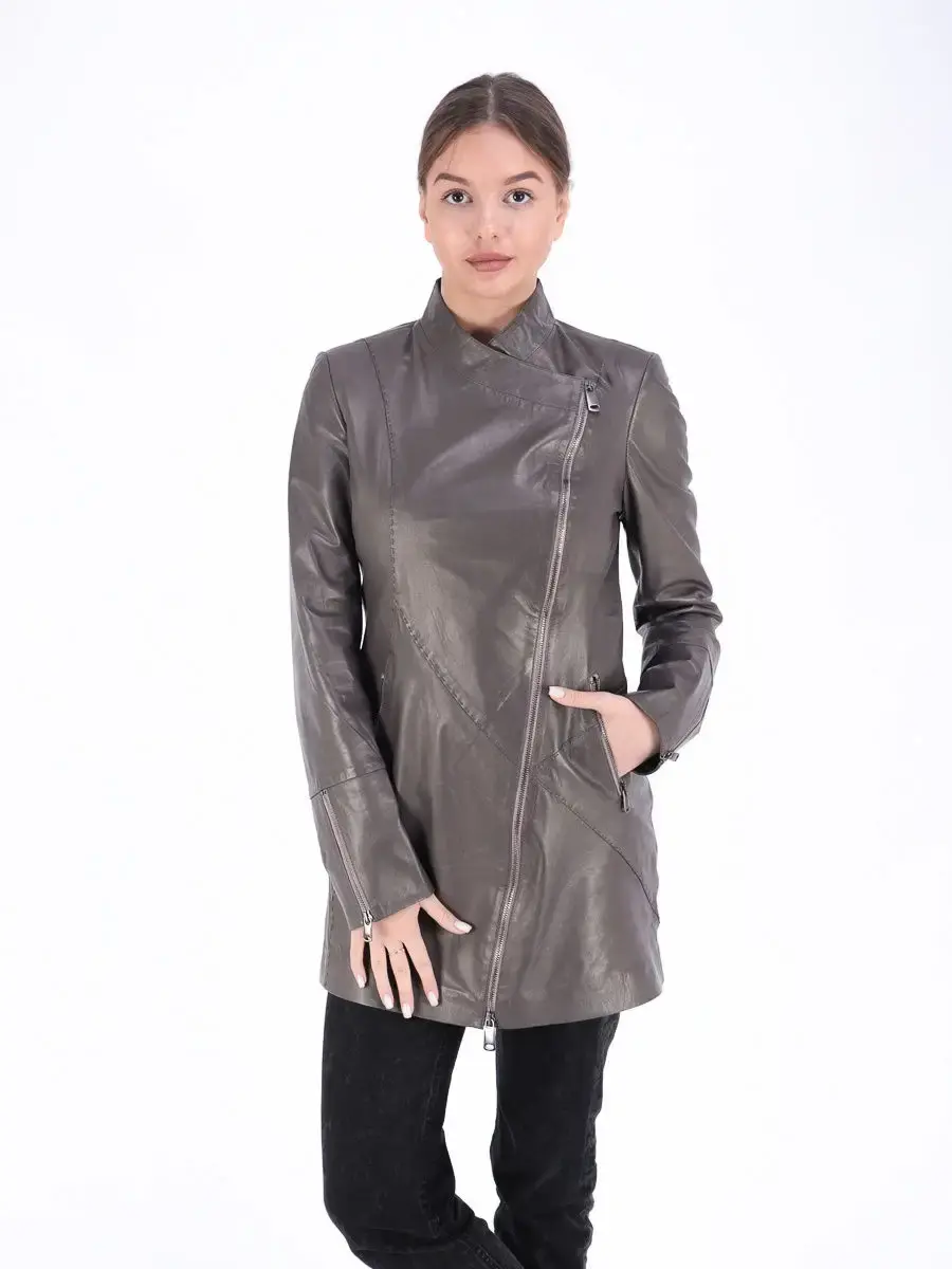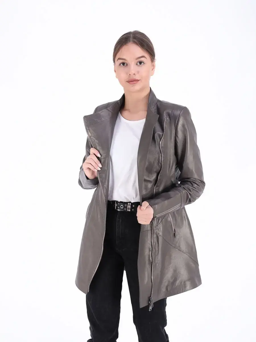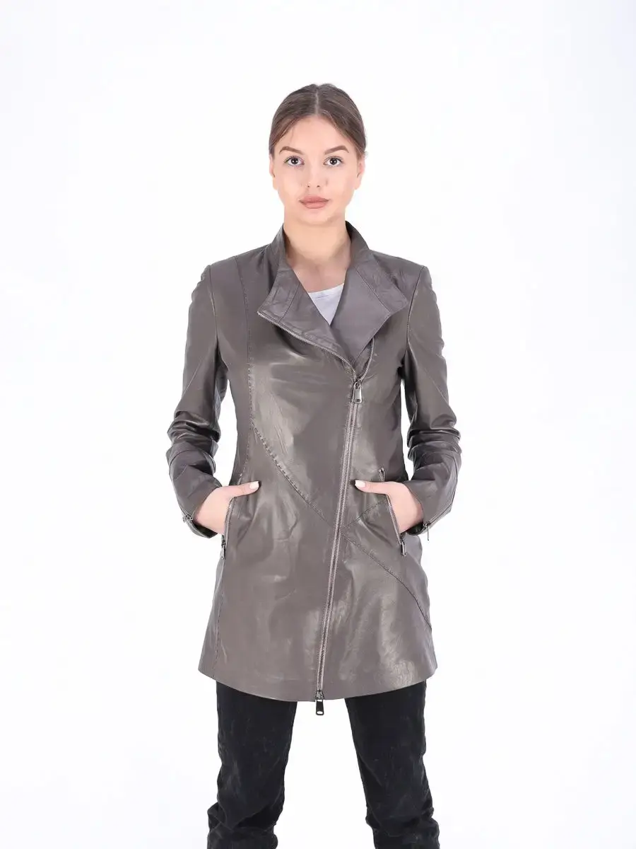 плащ женский из натуральной кожи