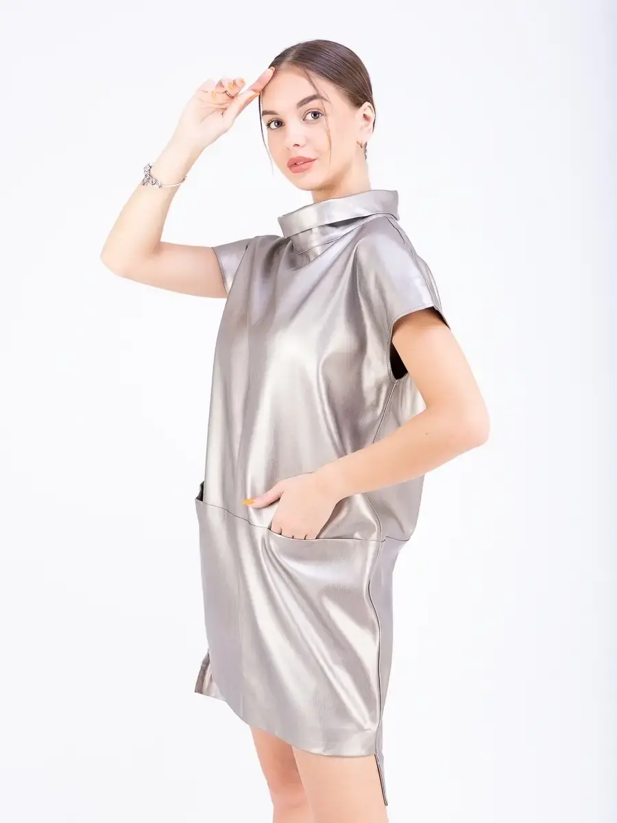 Женское платье из гладкой, эластичной экокожи (винилискожа). Производство Турция.