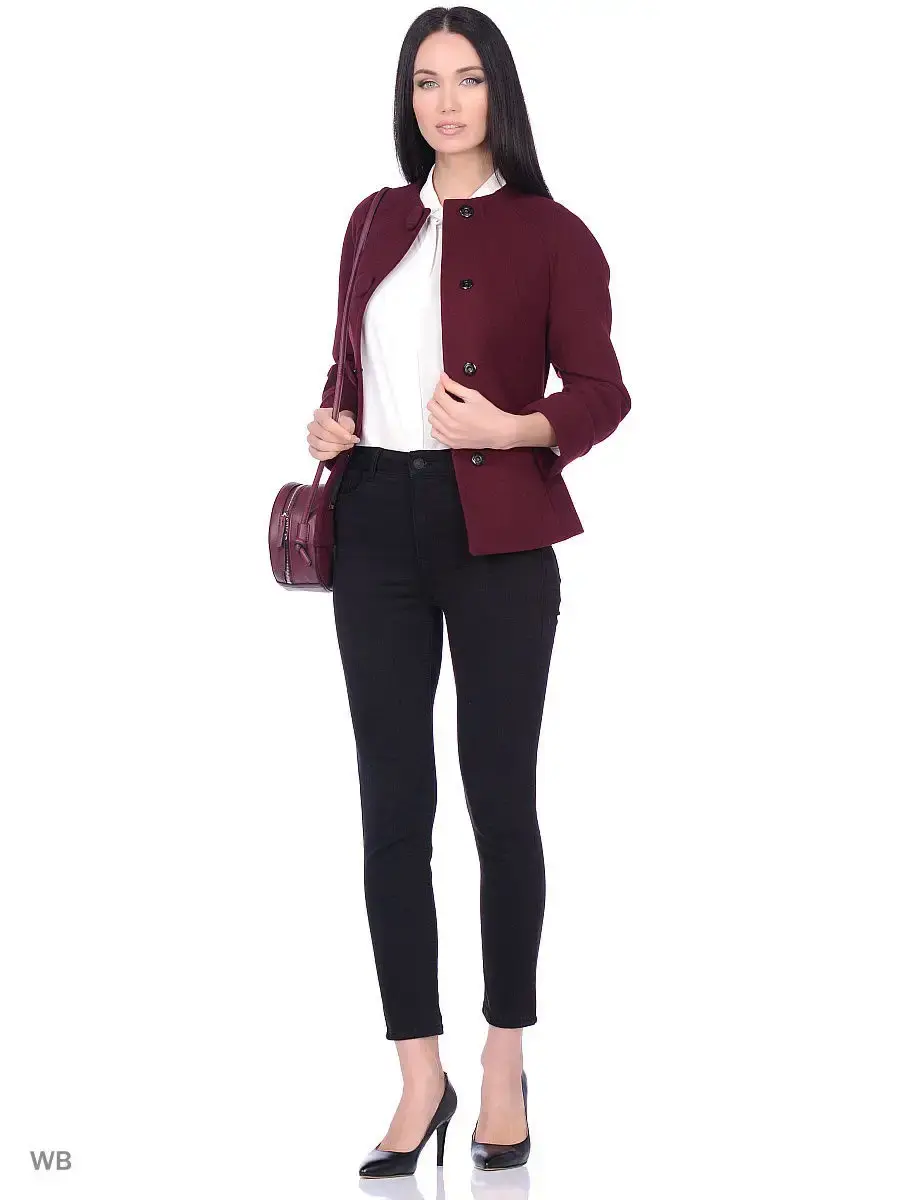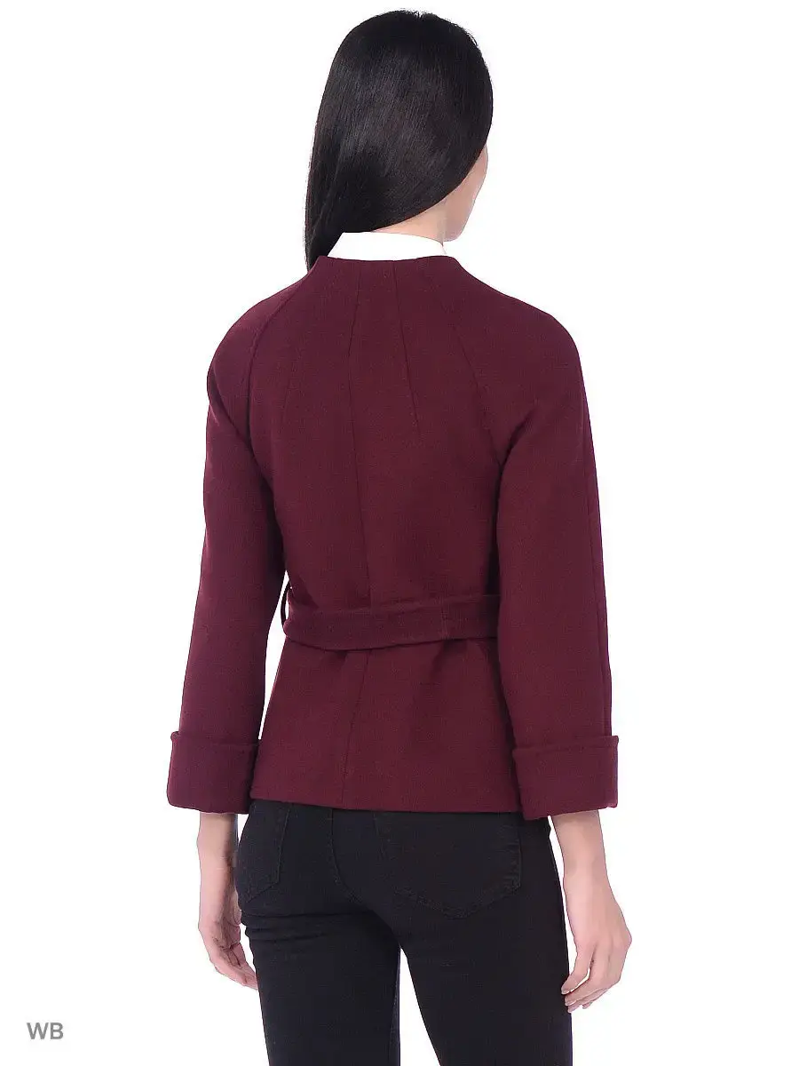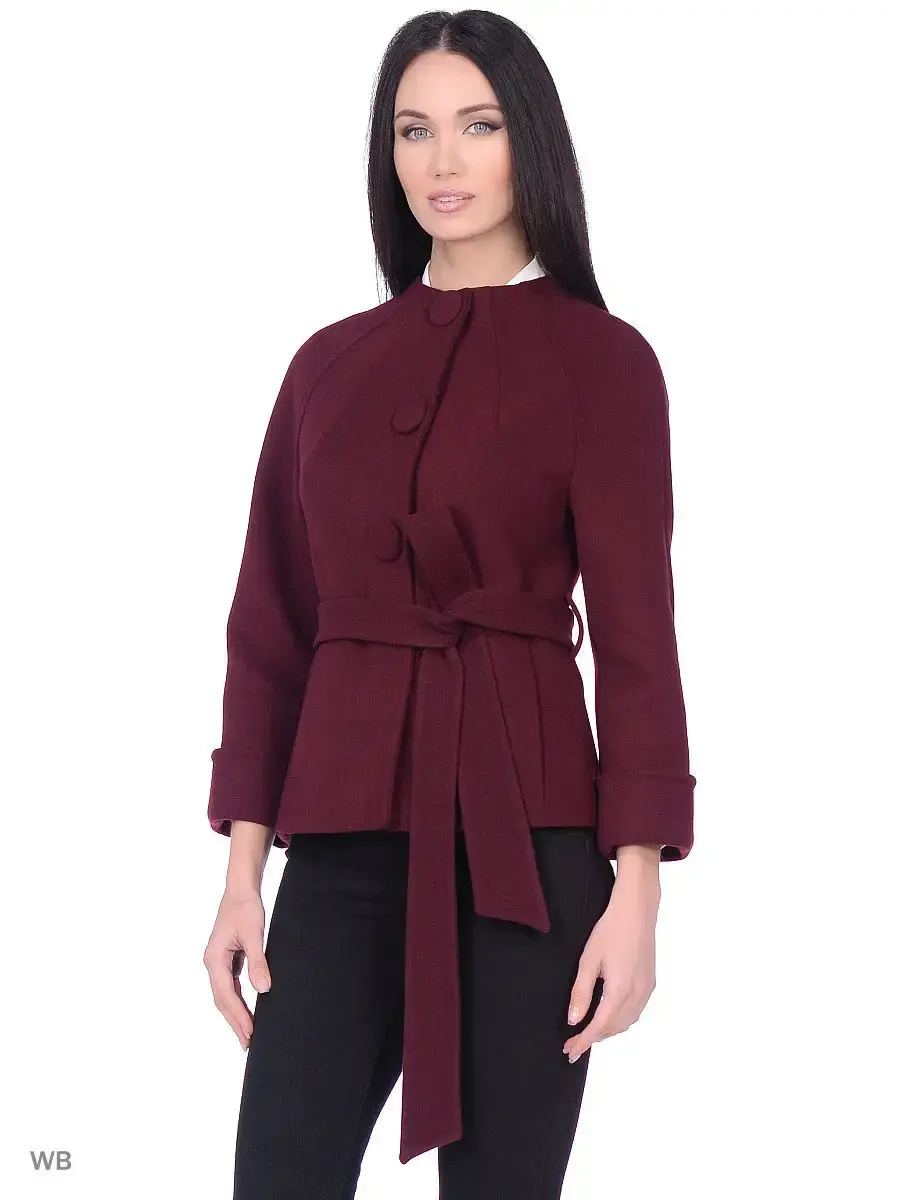 Однобортное полупальто приталенного силуэта длиной до бедер. Рукав реглан длиной 7/8 с отворотом, карманы-листочки, пояс из основной ткани. Застежка на скрытые кнопки. Декорировано крупными пуговицами, обитыми основной тканью и тамбурной строчкой.