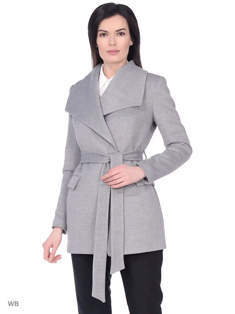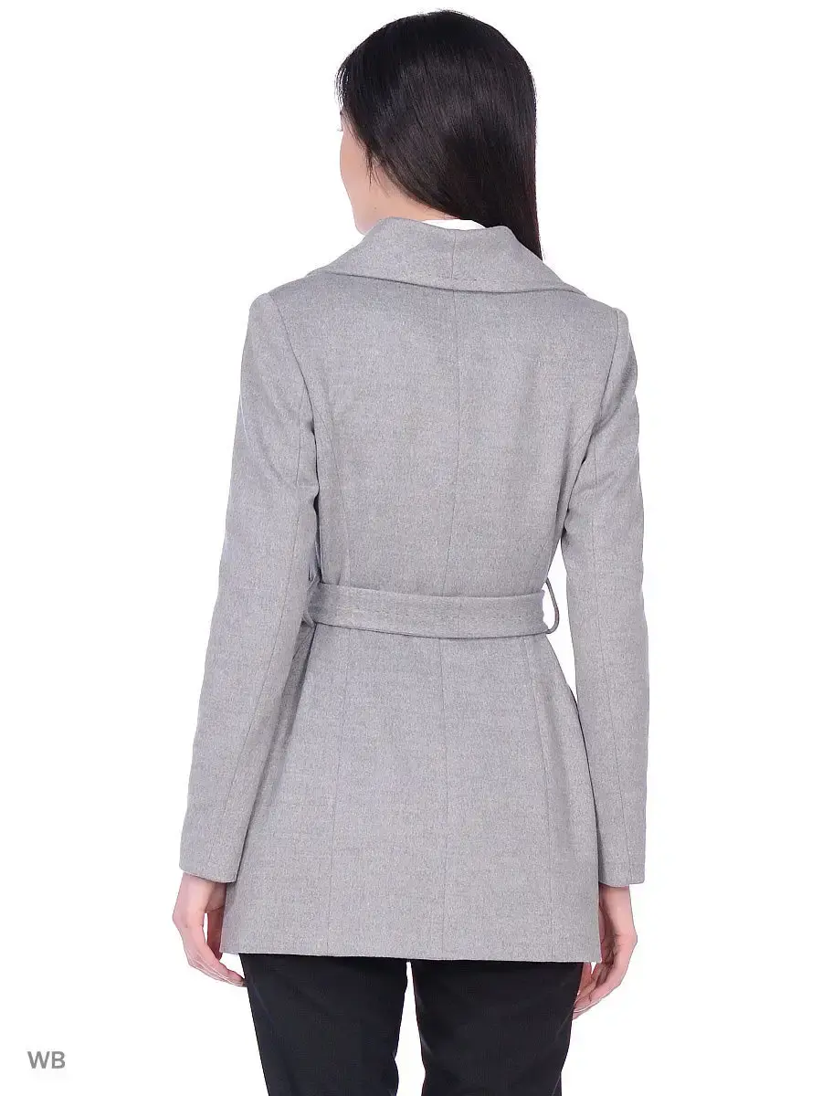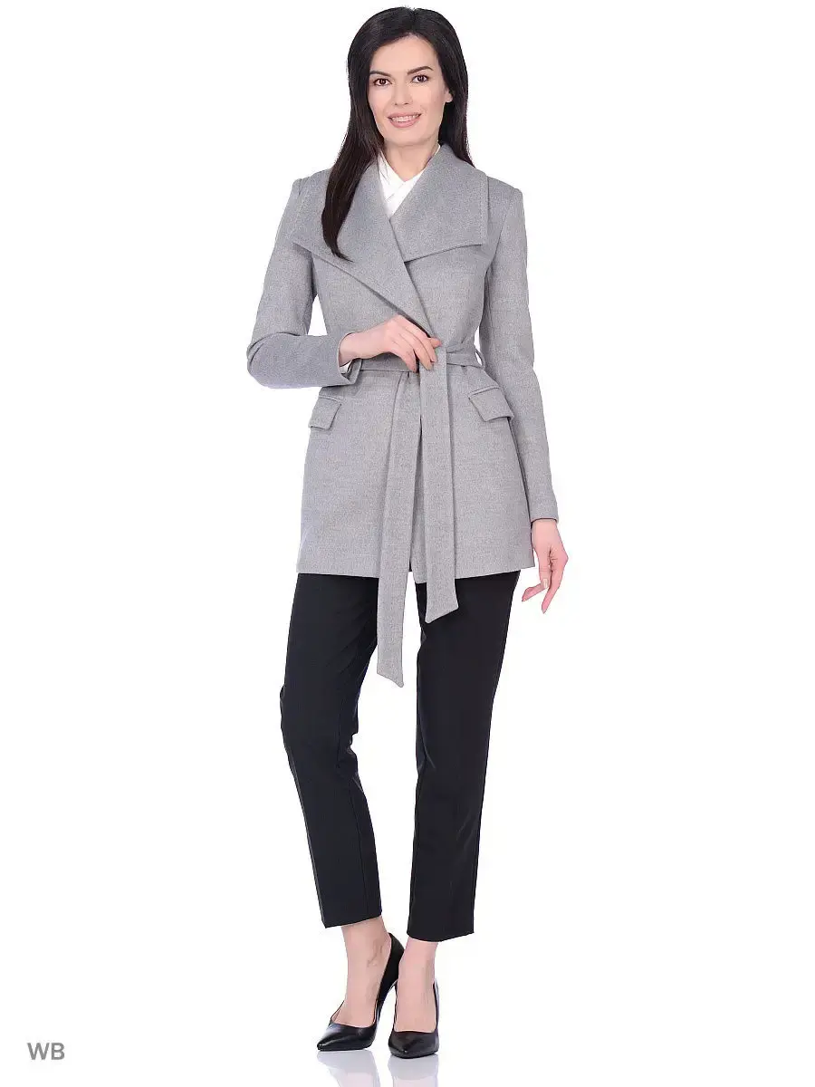 Полупальто полуприлегающего силуэта длиной до середины бедра. Втачной рукав, широкий воротник, прорезные карманы, декоративные клапаны, пояс из основной ткани.