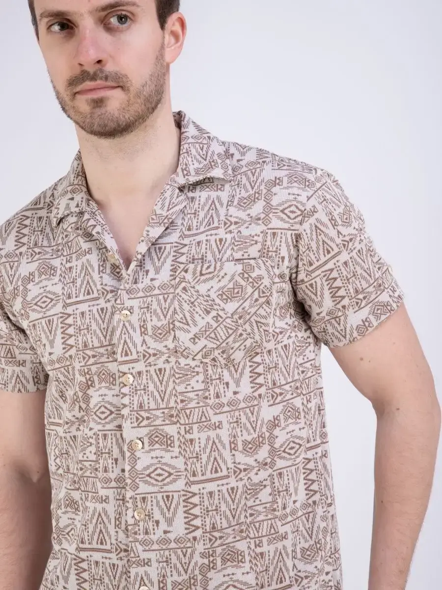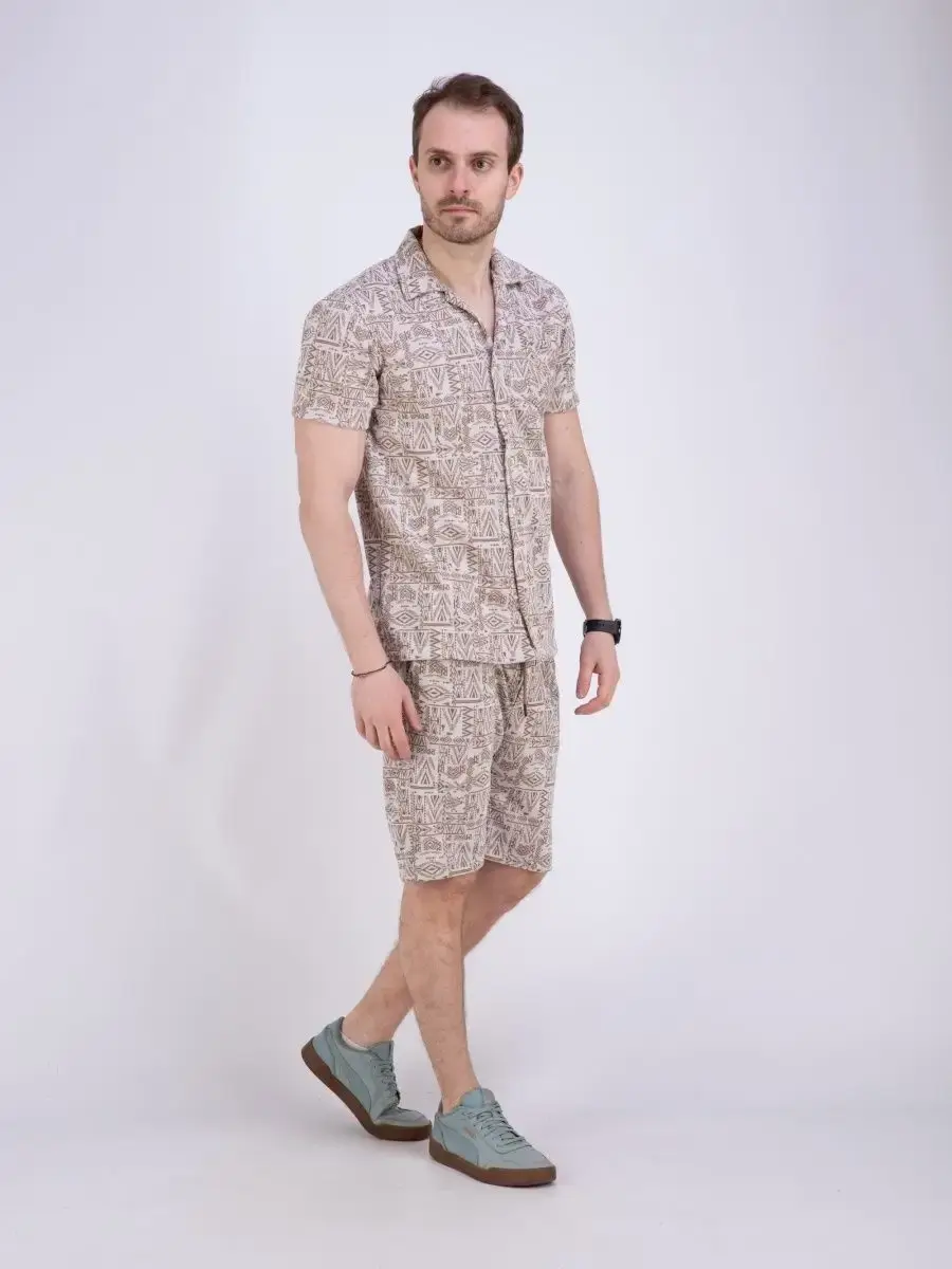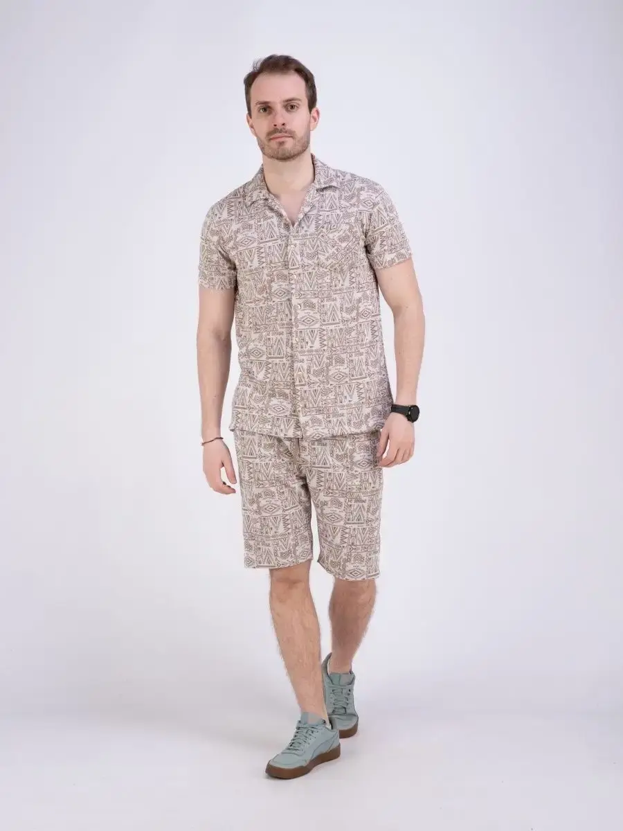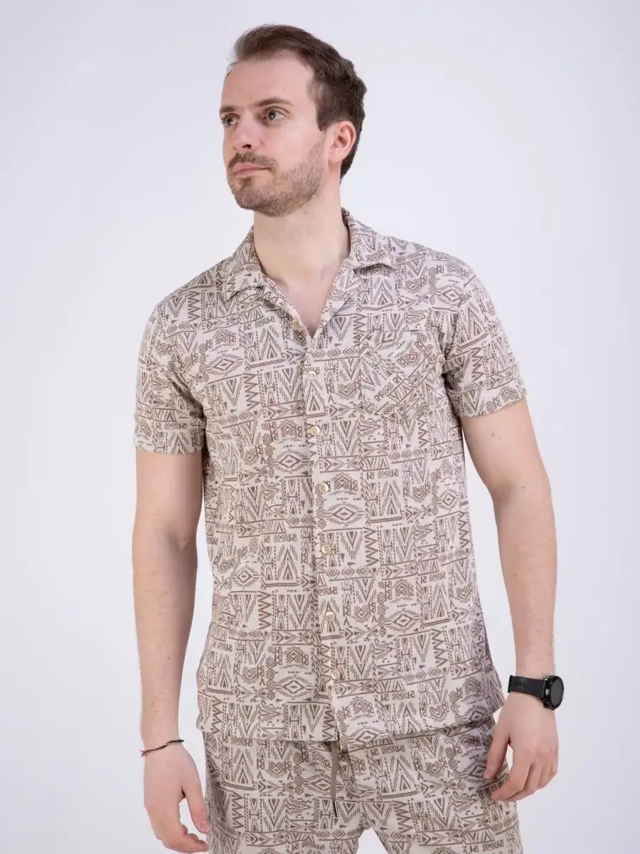 Шикарная мужская рубашка с коротким рукавом посадки slim fit (слим фит). Рубашка мужская выполнена из дышащего материала, который позволяет одинаково комфортно чувствовать себя как в жаркую погоду, так и в прохладные дни. Застежка на пуговицах с своеобразным этническим рисунком сочетается с джинсами, брюками и шортами, прекрасно дополнит Ваш образ. Рубашка мужская с карманом на груди производство Турция. Идеально подходит как для повседневного гардероба, так и для прогулок, не раздражает кожу и позволяет ей дышать. Рубашку можно дополнит шортами - артикул шорты для поиска 79664087, 79664088, 79664089, 79664090.