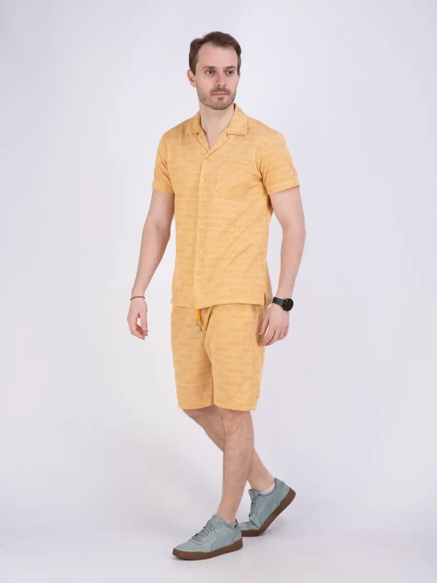 Шикарная мужская рубашка с коротким рукавом посадки slim fit (слим фит). Рубашка мужская выполнена из дышащего материала, который позволяет одинаково комфортно чувствовать себя как в жаркую погоду, так и в прохладные дни. Застежка на пуговицах с своеобразным рисунком сочетается с джинсами, брюками и шортами, прекрасно дополнит Ваш образ. Рубашка мужская с карманом на груди производство Турция. Идеально подходит как для повседневного гардероба, так и для прогулок, не раздражает кожу и позволяет ей дышать. Рубашку можно дополнит шортами - артикул шорты для поиска 79664154, 79664155, 79664156, 79664157, 79664158.