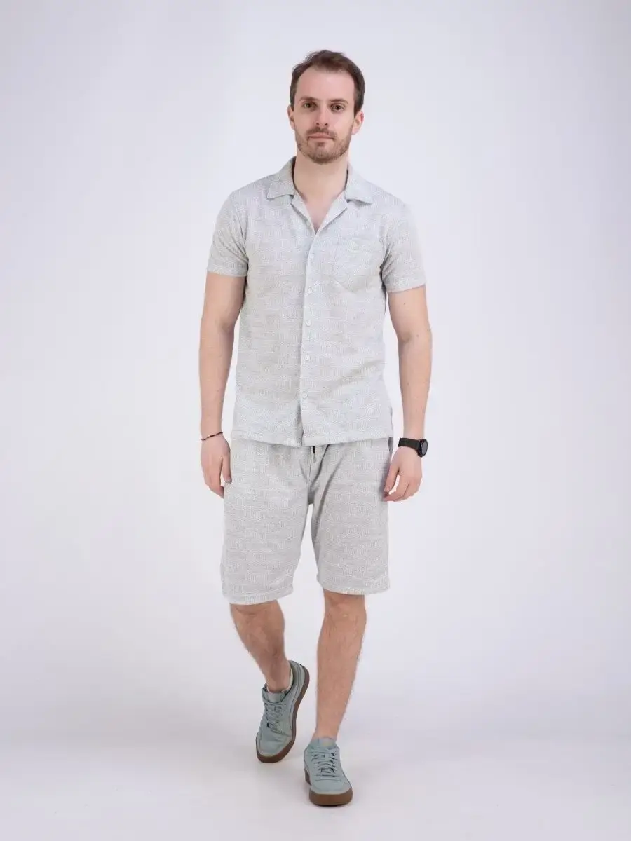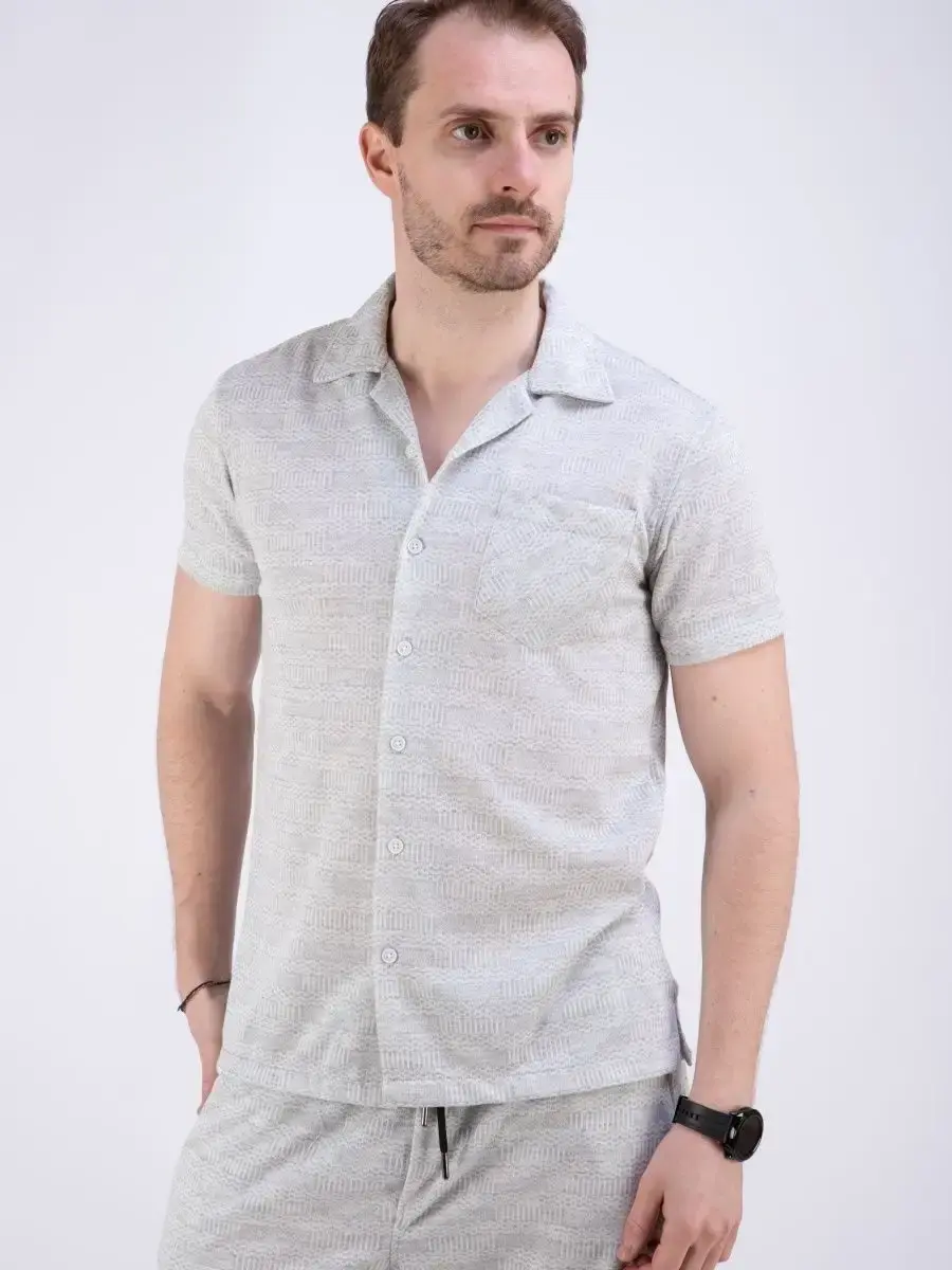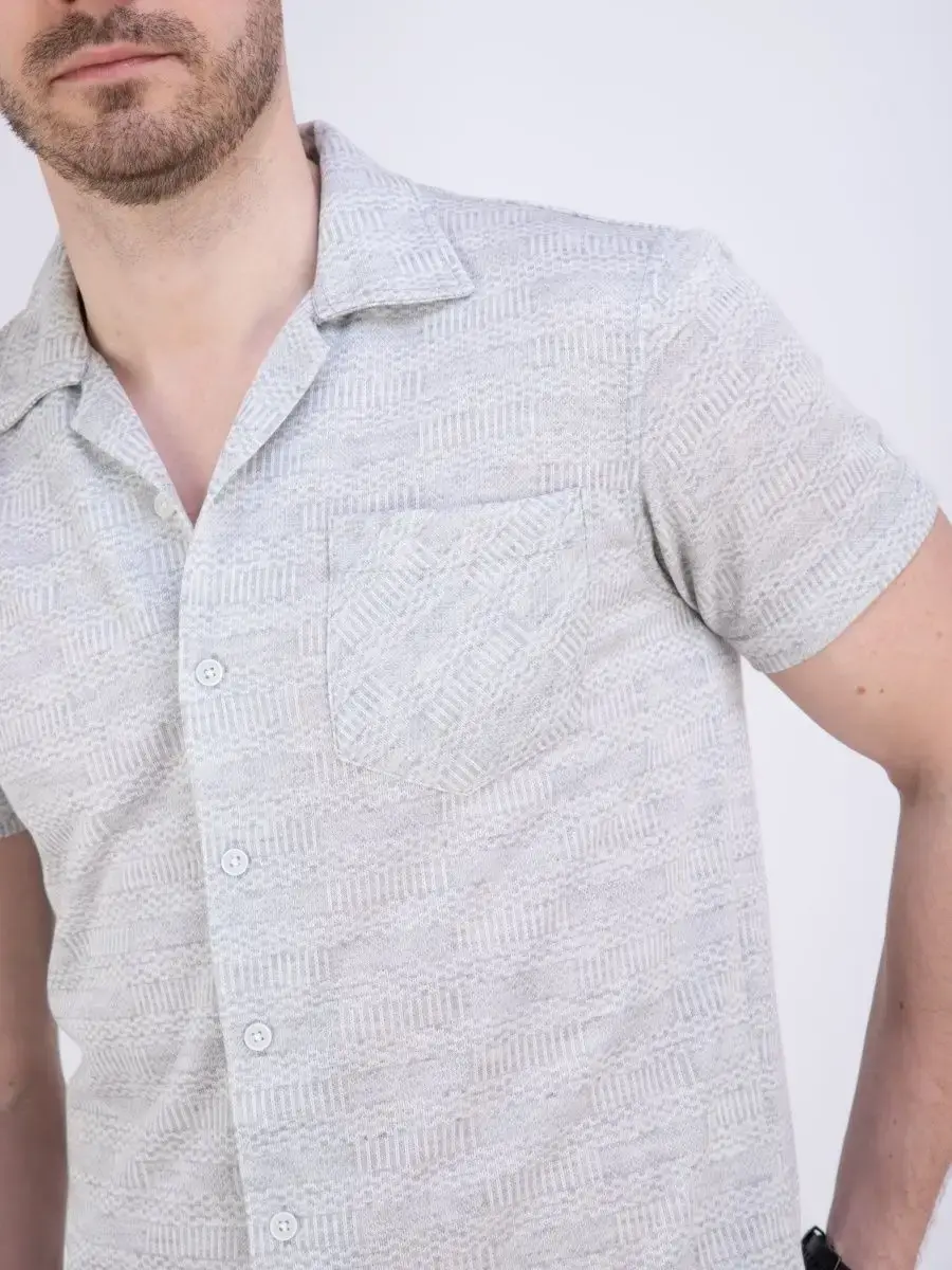 Шикарная мужская рубашка с коротким рукавом посадки slim fit (слим фит). Рубашка мужская выполнена из дышащего материала, который позволяет одинаково комфортно чувствовать себя как в жаркую погоду, так и в прохладные дни. Застежка на пуговицах с своеобразным рисунком сочетается с джинсами, брюками и шортами, прекрасно дополнит Ваш образ. Рубашка мужская с карманом на груди производство Турция. Идеально подходит как для повседневного гардероба, так и для прогулок, не раздражает кожу и позволяет ей дышать. Рубашку можно дополнит шортами - артикул шорты для поиска 79664154, 79664155, 79664156, 79664157, 79664158.