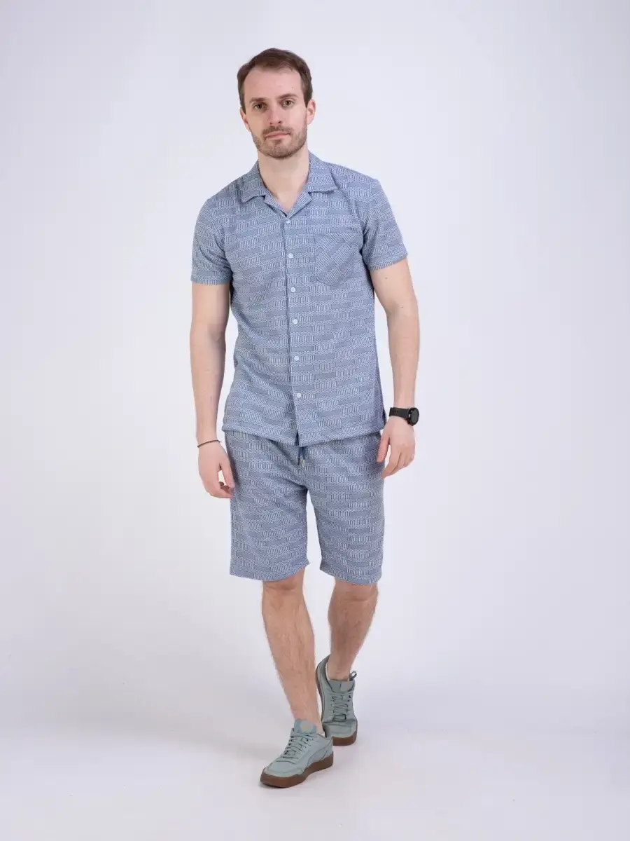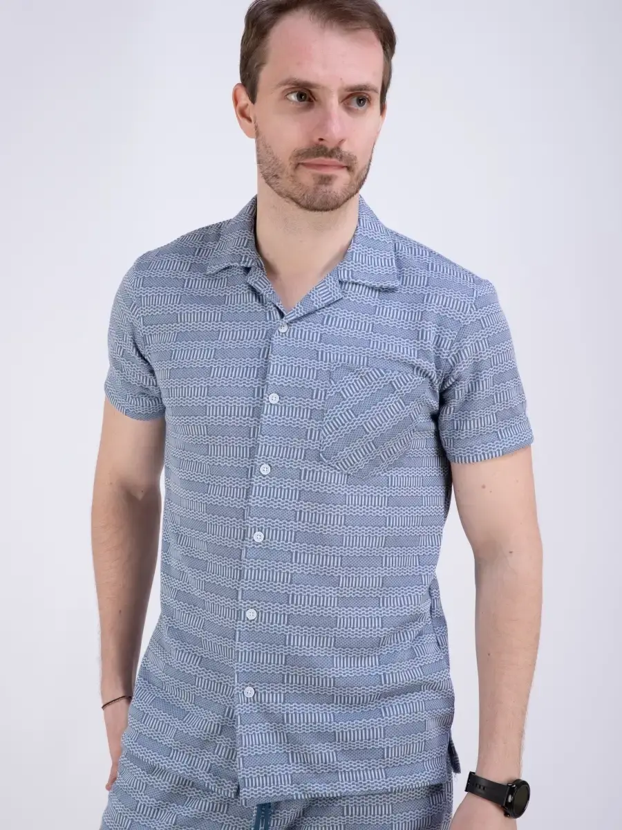 Шикарная мужская рубашка с коротким рукавом посадки slim fit (слим фит). Рубашка мужская выполнена из дышащего материала, который позволяет одинаково комфортно чувствовать себя как в жаркую погоду, так и в прохладные дни. Застежка на пуговицах с своеобразным рисунком сочетается с джинсами, брюками и шортами, прекрасно дополнит Ваш образ. Рубашка мужская с карманом на груди производство Турция. Идеально подходит как для повседневного гардероба, так и для прогулок, не раздражает кожу и позволяет ей дышать. Рубашку можно дополнит шортами - артикул шорты для поиска 79664154, 79664155, 79664156, 79664157, 79664158.