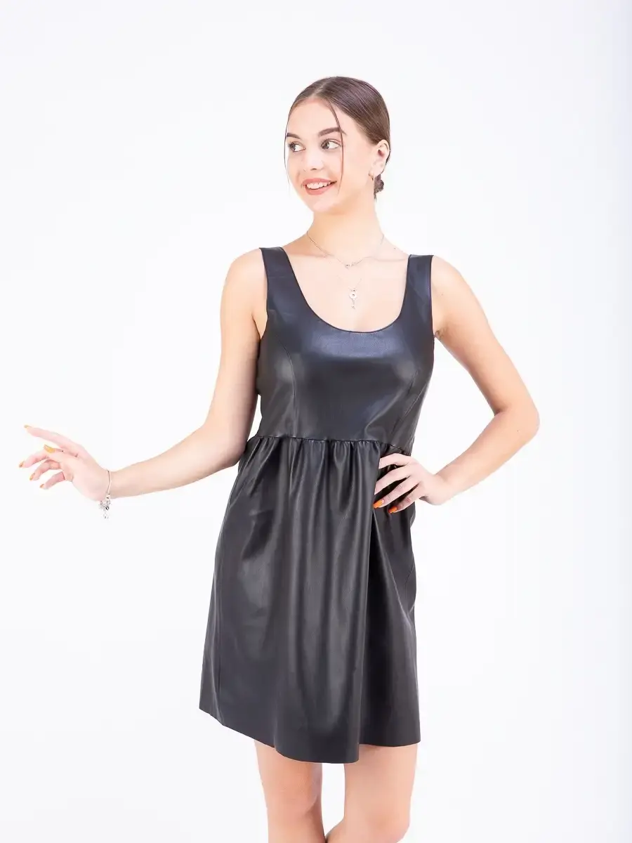 Женский сарафан из гладкой, эластичной экокожи (винилискожа). Кожа - один из самых заметных трендов сезона! Производство Турция.