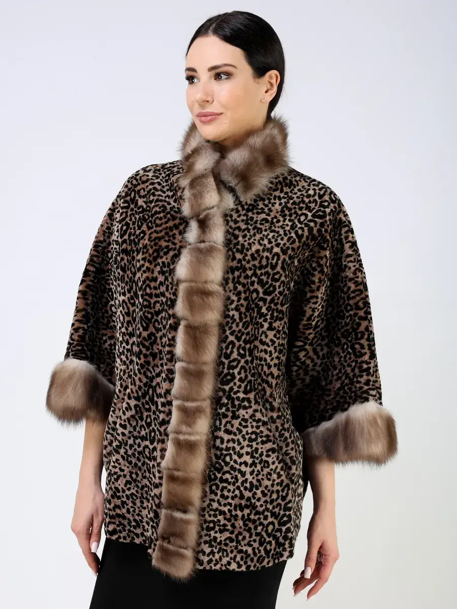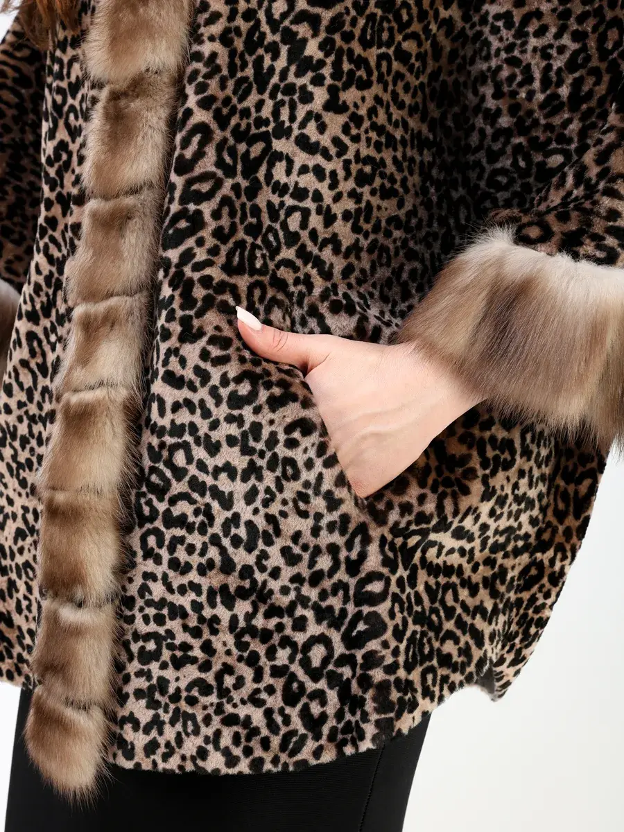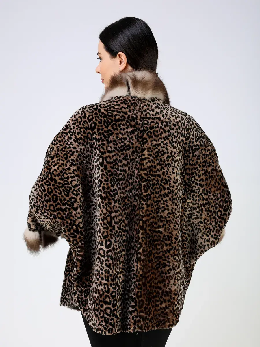 Рукав короткий - летучая мышь, леопардовый принт, вставки - мех куницы
