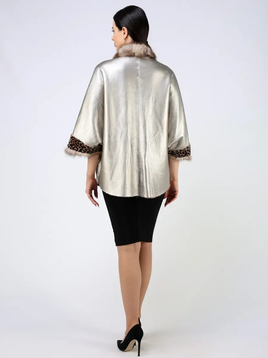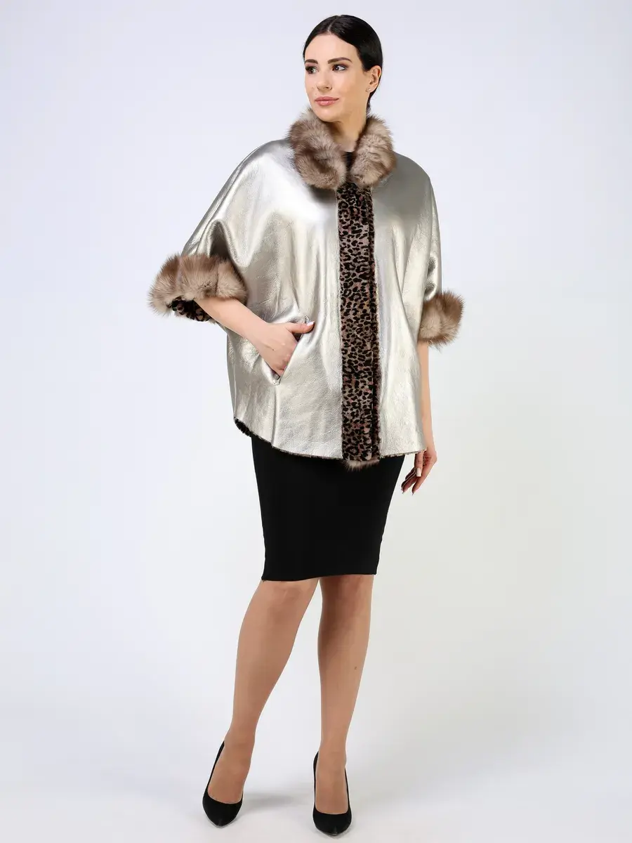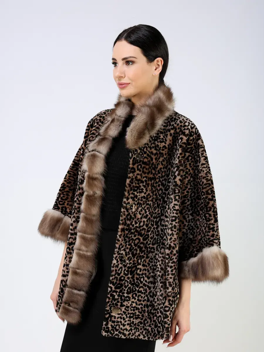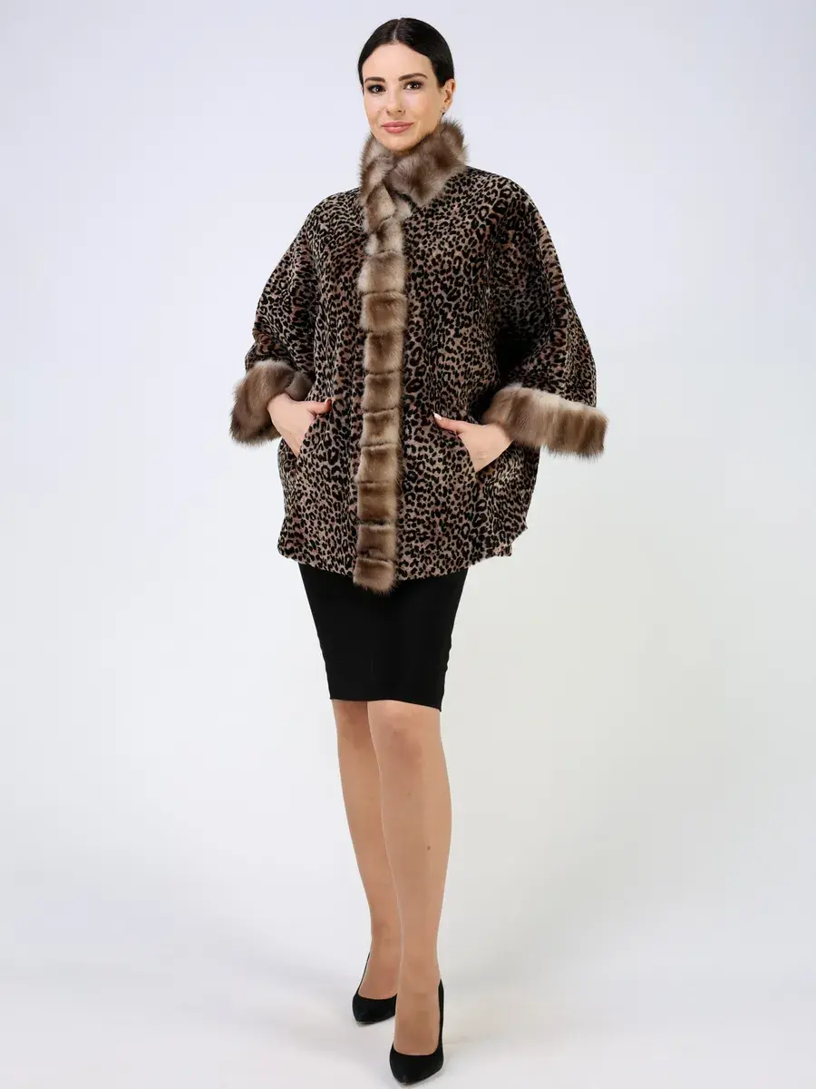 Рукав короткий - летучая мышь, леопардовый принт, вставки - мех куницы