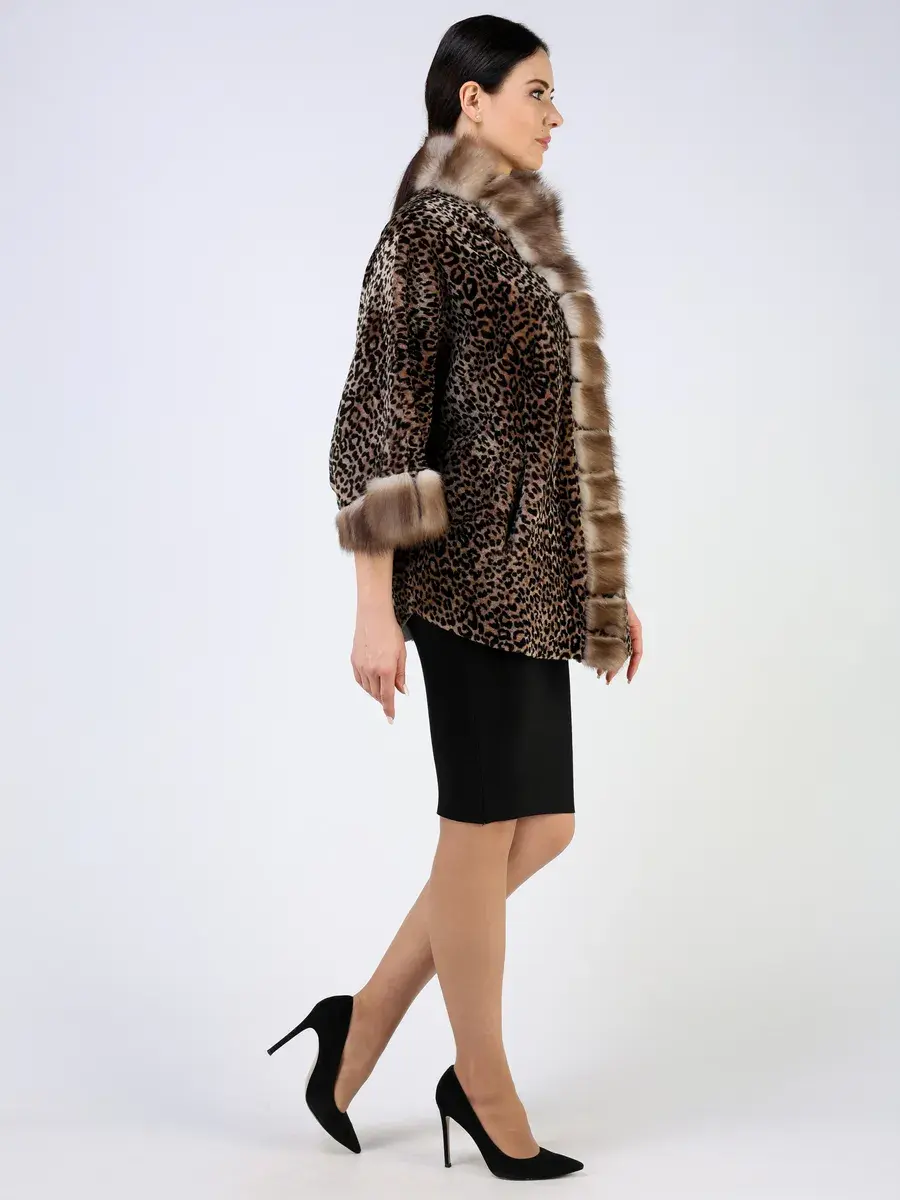 Эксклюзивная двухсторонняя дубленка женская натуральная бренда MONDIAL - это качественная женская дубленка - шуба женская зимняя, идеальная для стильных модниц, стремящихся выглядеть безупречно в любое время года, зимой и в холодный период межсезонья - начало весны и конец осени. Дубленка женская зимняя выполнено из меха овчины с принтом под леопарда и с отделкой из меха куницы, что позволить вам выделиться из толпы.