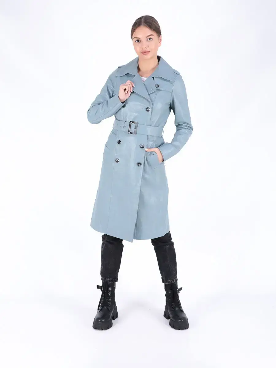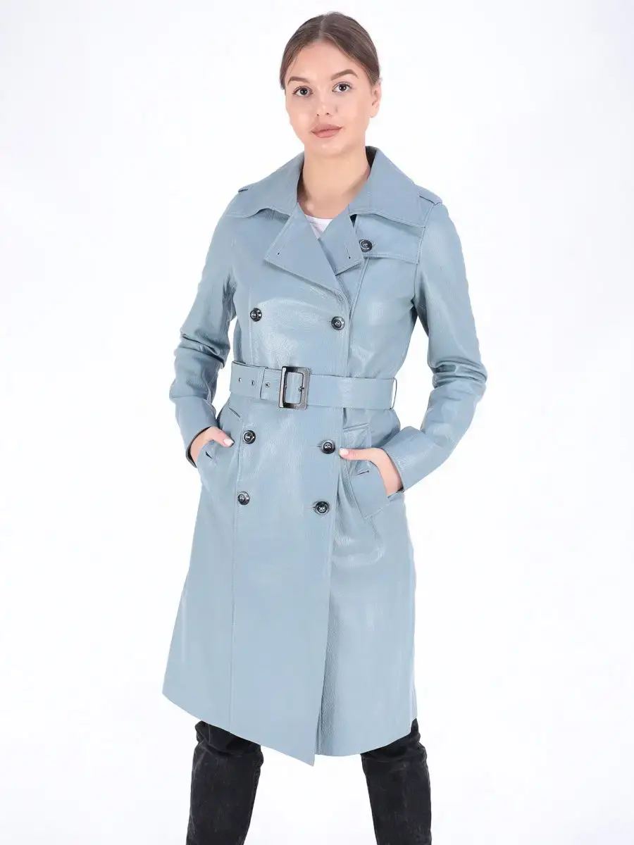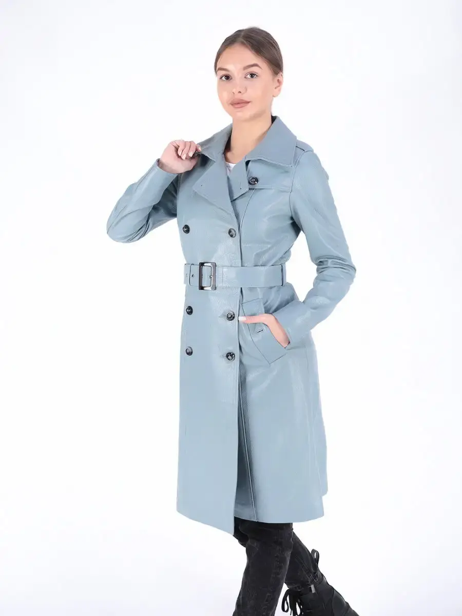 Элегантный и стильный кожаный тренчкот женский длинный из коллекции MONDIAL - стильная и качественная верхняя одежда, которая станет украшением ваших образов! Двубортная модель дополнена декоративными эполетами и поясом, который делает изделие прямого свободного кроя приталенным. Длинный демисезонный плащ женский на весну без утеплителя застегивается на пуговицы. Длина по спинке 100см. Он имеет два прорезных кармана по бокам и шлицу сзади. Кожаный тренч женский длинный сшит из плотной и мягкой, непромокаемой и непродуваемой натуральной кожи ягненка с мелкозернистой фактурой. Изнутри он отделан приятной к телу подкладкой. Практичная верхняя одежда с красивым дизайном станет настоящей находкой для базового гардероба взрослых женщин, девушек или подростков. Это хороший выбор для весны и осени или прохладного лета. Классическая модель с отложным английским воротом и погонами красиво сидит по фигуре, формируя женственный силуэт. Такая современная модная классика от турецкого производителя дополнит праздничные и сдержанные деловые или офисные образы, интересные молодежные луки в стиле оверсайз и кэжуал или наряд в стилистике олд мани. Легкий плащ летний из натуральной водоотталкивающей кожи премиум - качества станет замечательным выбором в качестве повседневной верхней одежды. В нем вам будет комфортно ходить на работу в офис или на учебу в школу, колледж и университет. Качественная брендовая вещь не даст замерзнуть или промокнуть под дождем в прохладные весенние, осенние месяцы или в летнюю непогоду. Она представлена в трендовом коричневом, черном и в других цветах и отлично смотрится на девушках высокого, среднего и невысокого роста. Размерная сетка включает большие плюс - сайз размеры, которые подойдут полным леди. Тренч длиной ниже колена можно надеть на выход или на простую вечернюю прогулку. Он отлично сочетается с обувью и аксессуарами в разных популярных стилях. У нас есть акции и распродажи, вы можете купить наши товары в подарок со скидкой!