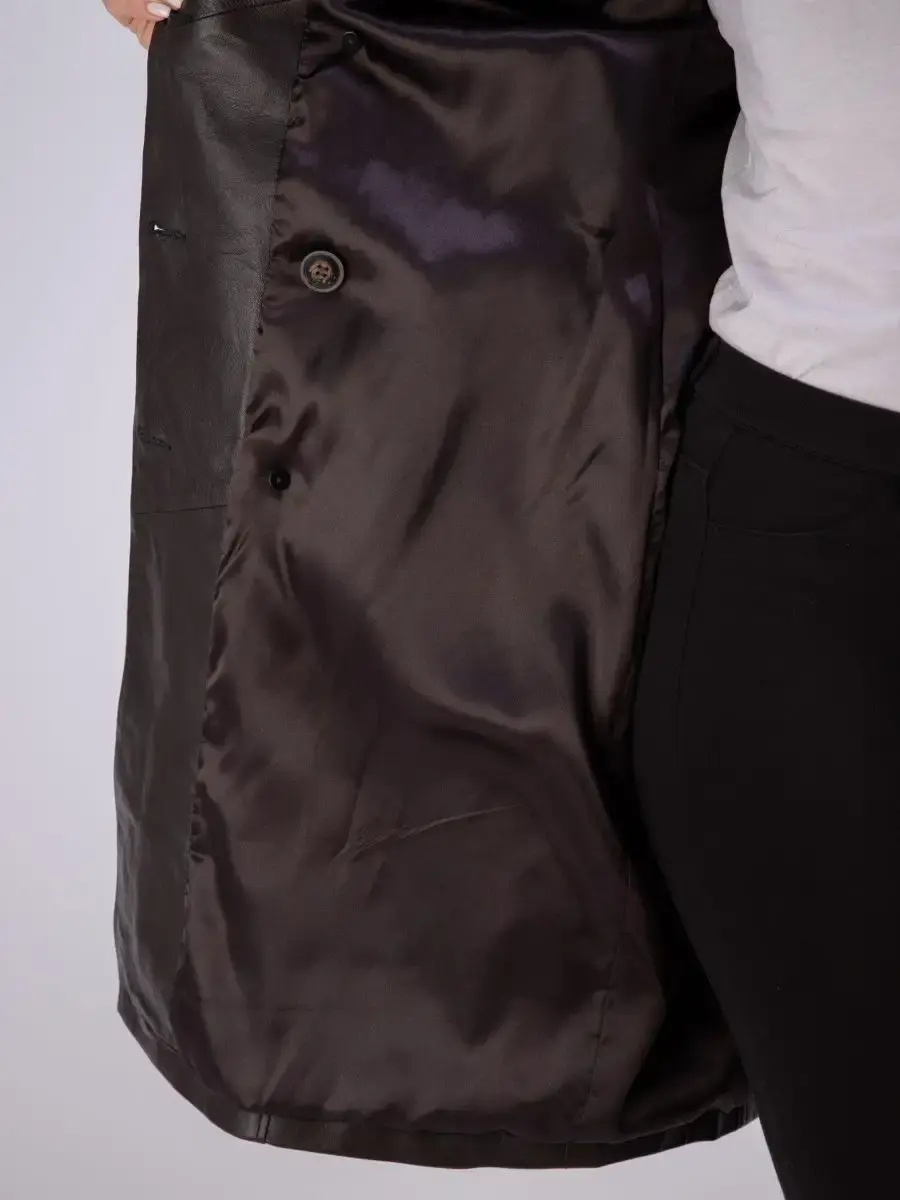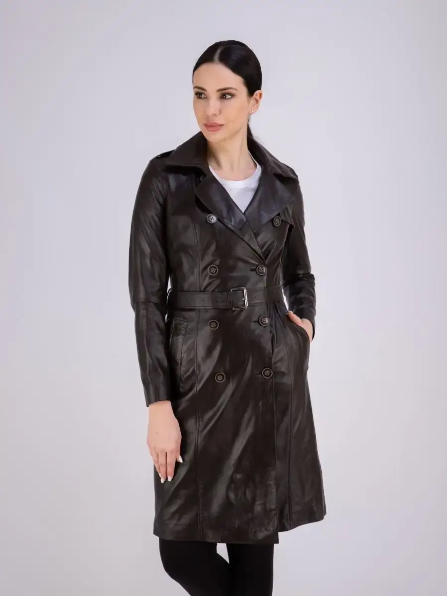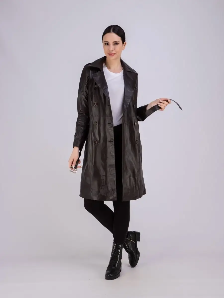 Элегантный и стильный кожаный тренчкот женский длинный из коллекции MONDIAL - стильная и качественная верхняя одежда, которая станет украшением ваших образов! Двубортная модель дополнена декоративными эполетами и поясом, который делает изделие прямого свободного кроя приталенным. Длинный демисезонный плащ женский на весну без утеплителя застегивается на пуговицы. Длина по спинке 100см. Он имеет два прорезных кармана по бокам и шлицу сзади. Кожаный тренч женский длинный сшит из плотной и мягкой, непромокаемой и непродуваемой натуральной кожи ягненка. Изнутри он отделан приятной к телу подкладкой. Практичная верхняя одежда с красивым дизайном станет настоящей находкой для базового гардероба взрослых женщин, девушек или подростков. Это хороший выбор для весны и осени или прохладного лета. Классическая модель с отложным английским воротом и погонами красиво сидит по фигуре, формируя женственный силуэт. Такая современная модная классика от турецкого производителя дополнит праздничные и сдержанные деловые или офисные образы, интересные молодежные луки в стиле оверсайз и кэжуал или наряд в стилистике олд мани. Легкий плащ летний из натуральной водоотталкивающей кожи премиум - качества станет замечательным выбором в качестве повседневной верхней одежды. В нем вам будет комфортно ходить на работу в офис или на учебу в школу, колледж и университет. Качественная брендовая вещь не даст замерзнуть или промокнуть под дождем в прохладные весенние, осенние месяцы или в летнюю непогоду. Она представлена в трендовом коричневом, черном и в других цветах и отлично смотрится на девушках высокого, среднего и невысокого роста. Размерная сетка включает большие плюс - сайз размеры, которые подойдут полным леди. Тренч длиной ниже колена можно надеть на выход или на простую вечернюю прогулку. Он отлично сочетается с обувью и аксессуарами в разных популярных стилях. У нас есть акции и распродажи, вы можете купить наши товары в подарок со скидкой!