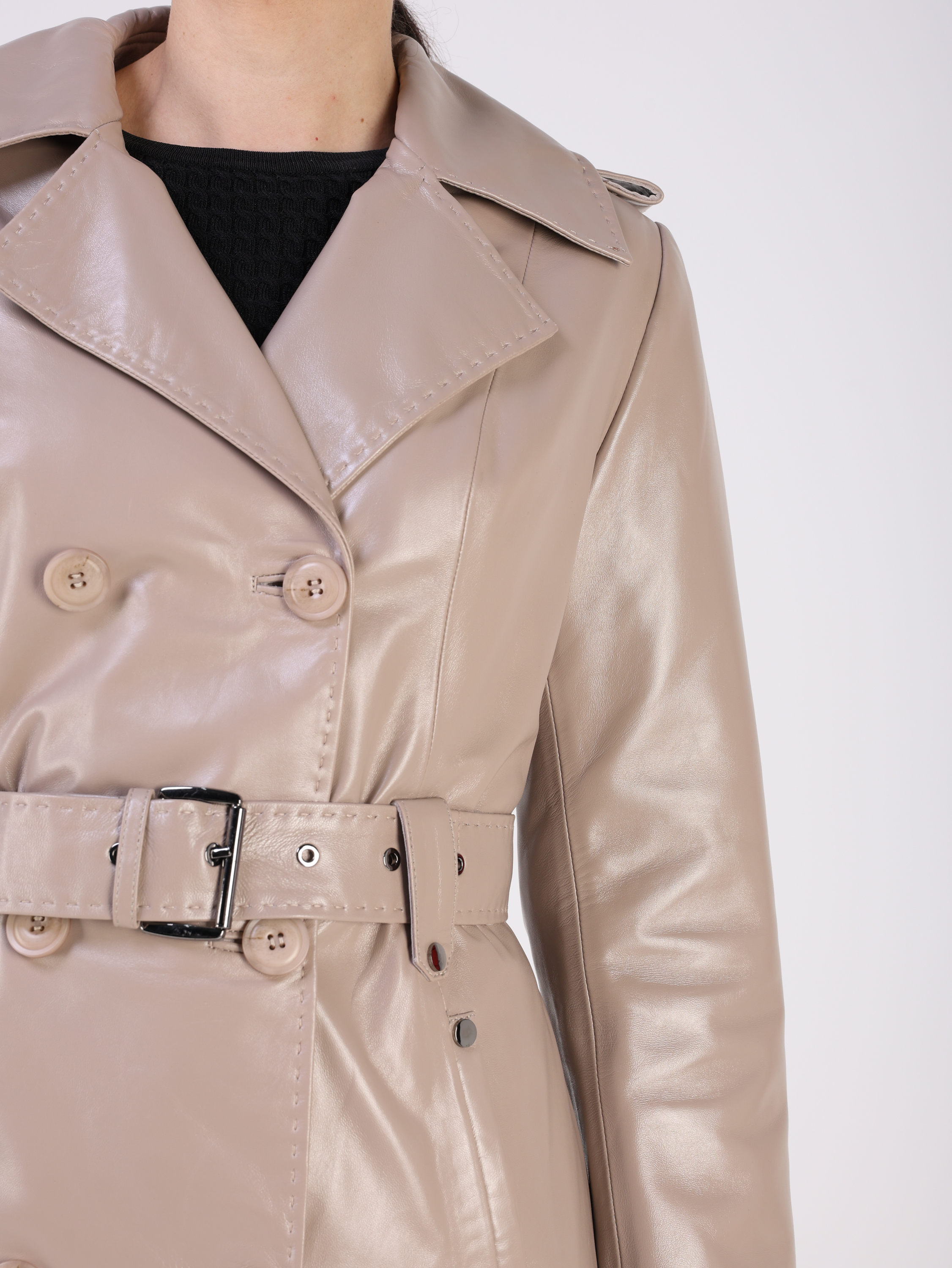 прорезные двубортные пуговицы Кожаный тренчкот