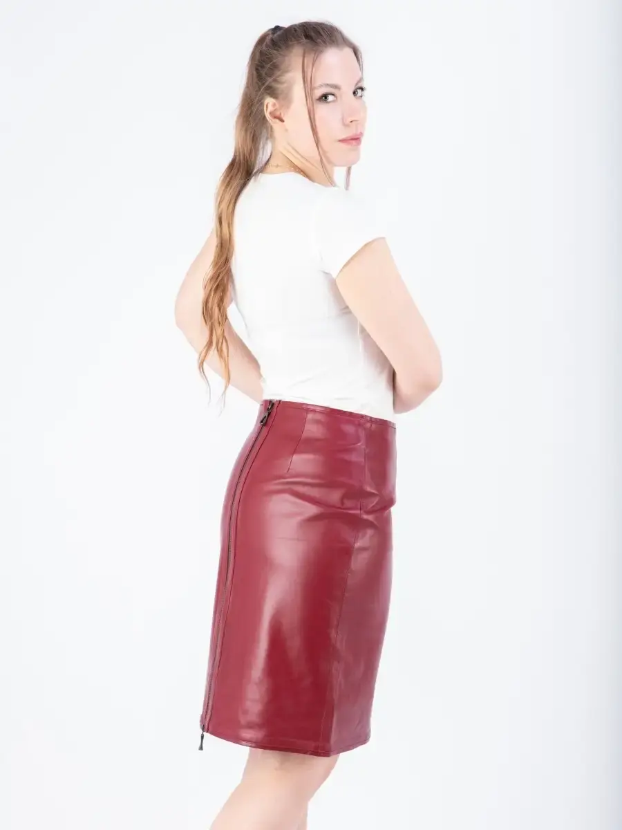 Женская юбка из натуральной кожи. Стильная женская кожаная юбка с молнией по всей длине изготовлена из кожи ягненка, кожа гладкая и мягкая. Юбка кожаная шикарно смотрится на любой фигуре! Подбирая себе размер юбки, учтите, что размер юбки на модели L, обхвать по талии 102 см. MONDIAL Производство Турция