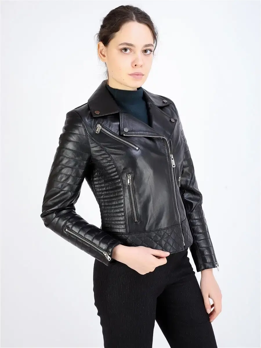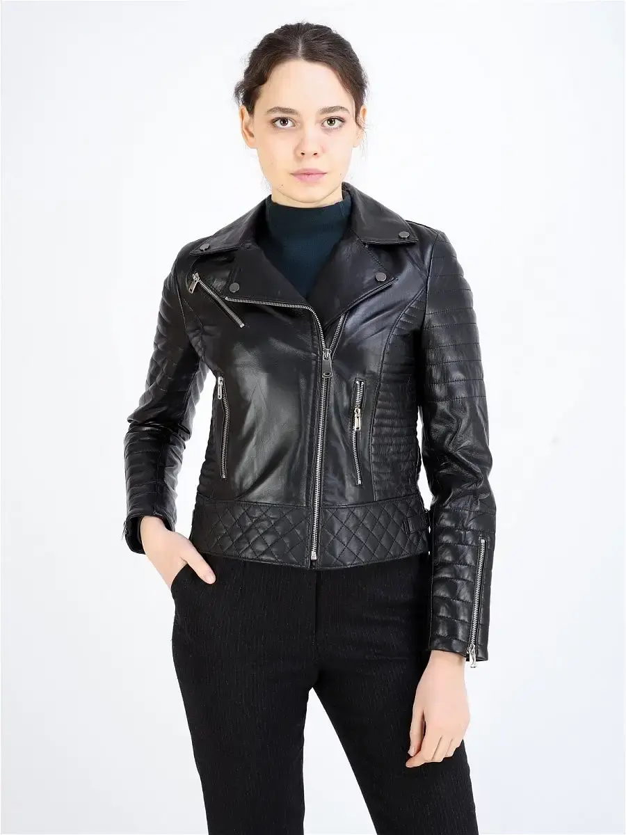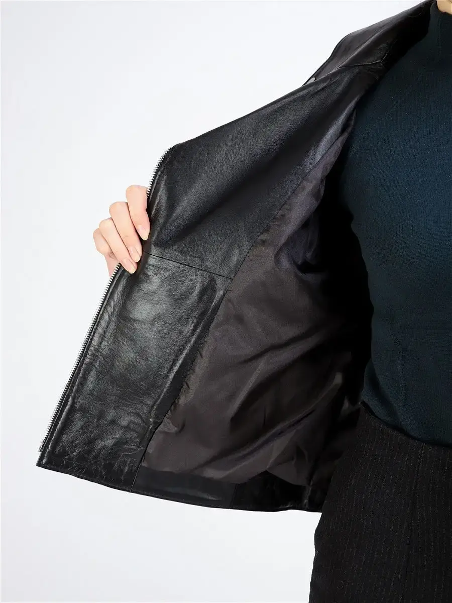 куртка кожаная женская с подкладкой из полиэстера